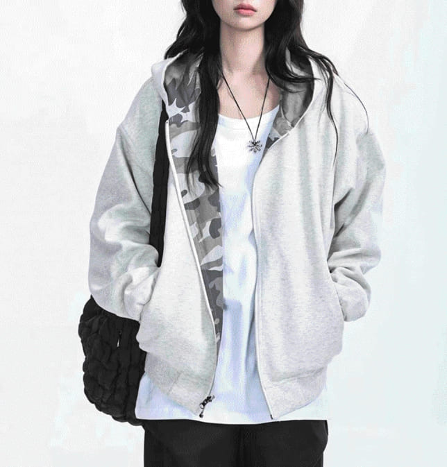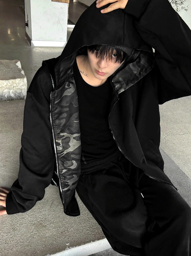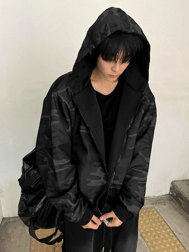 Double Camo & Deep Black Overfit Hood Zip-Up