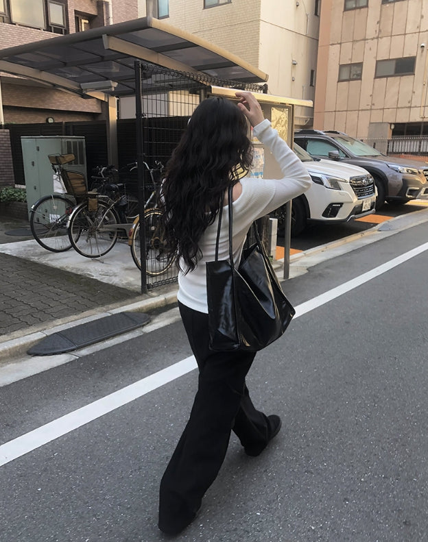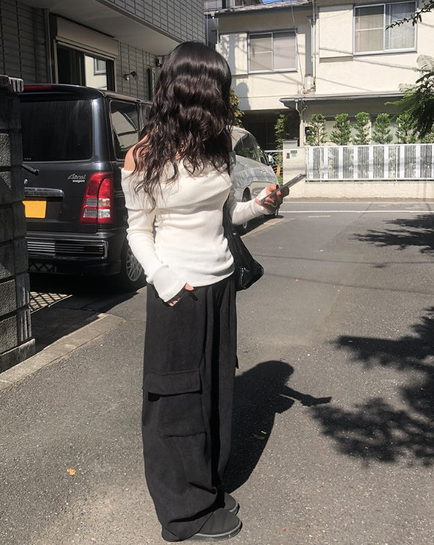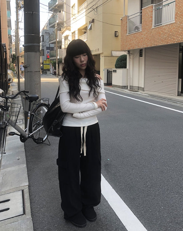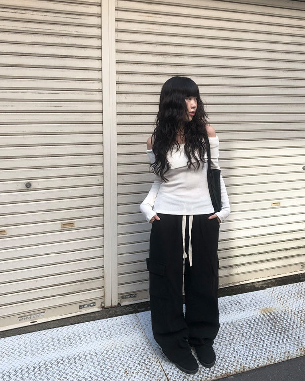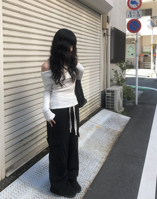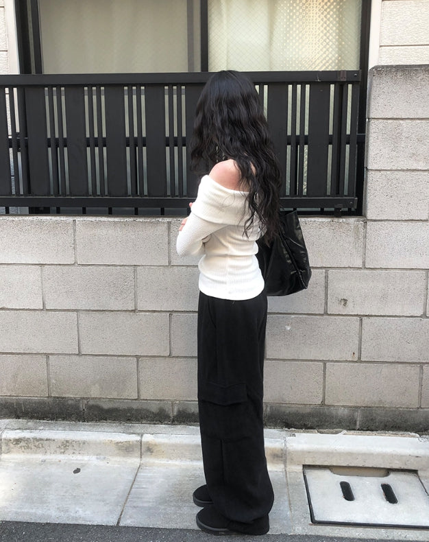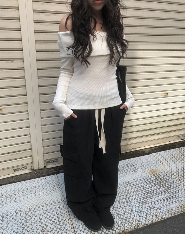 ダブオフショルダー長袖ニット