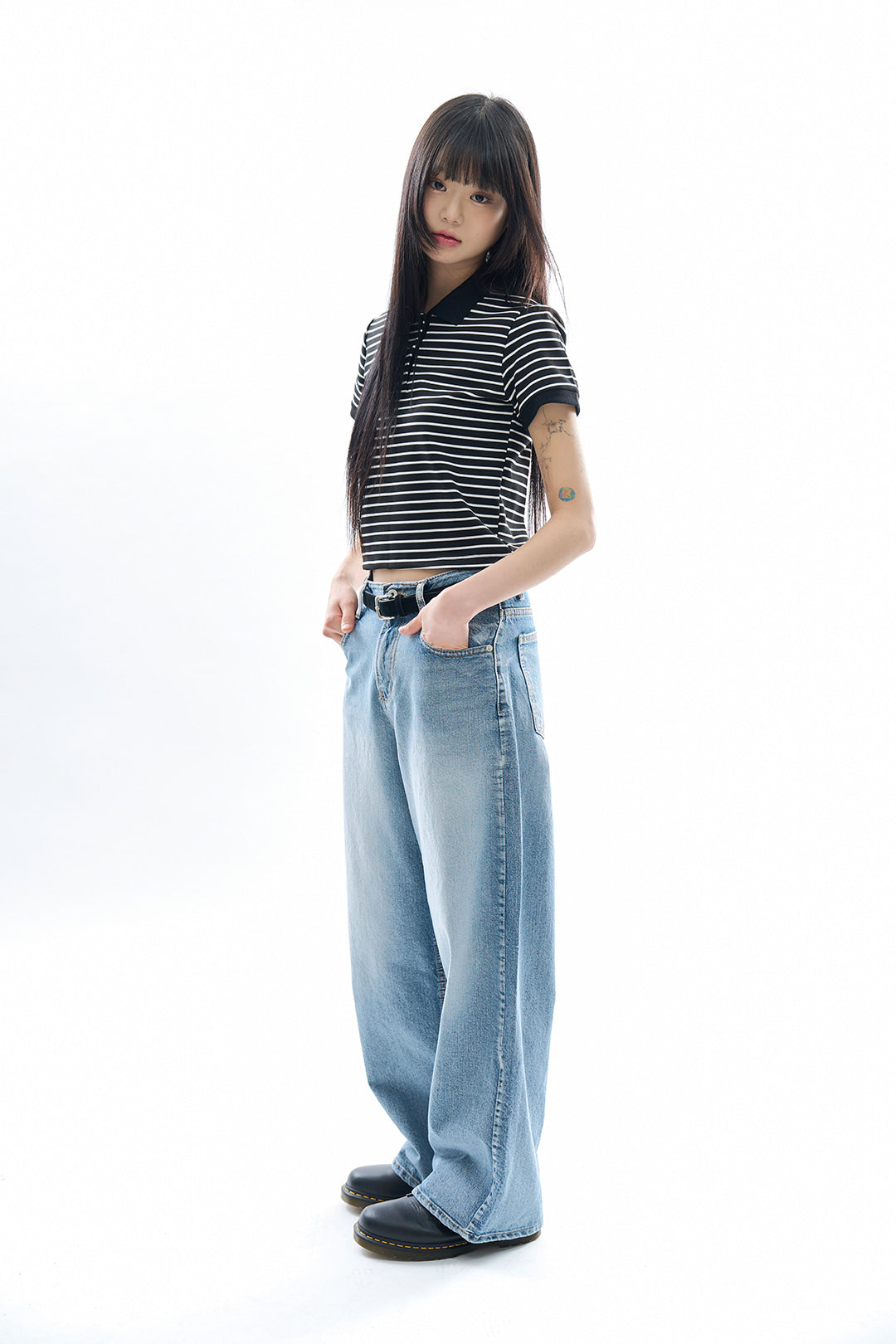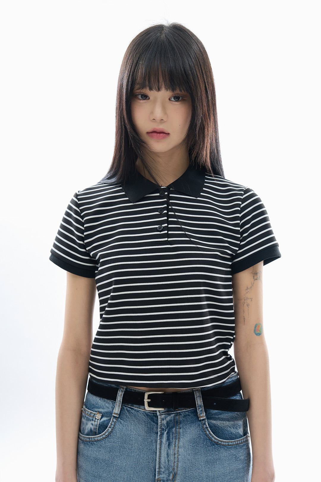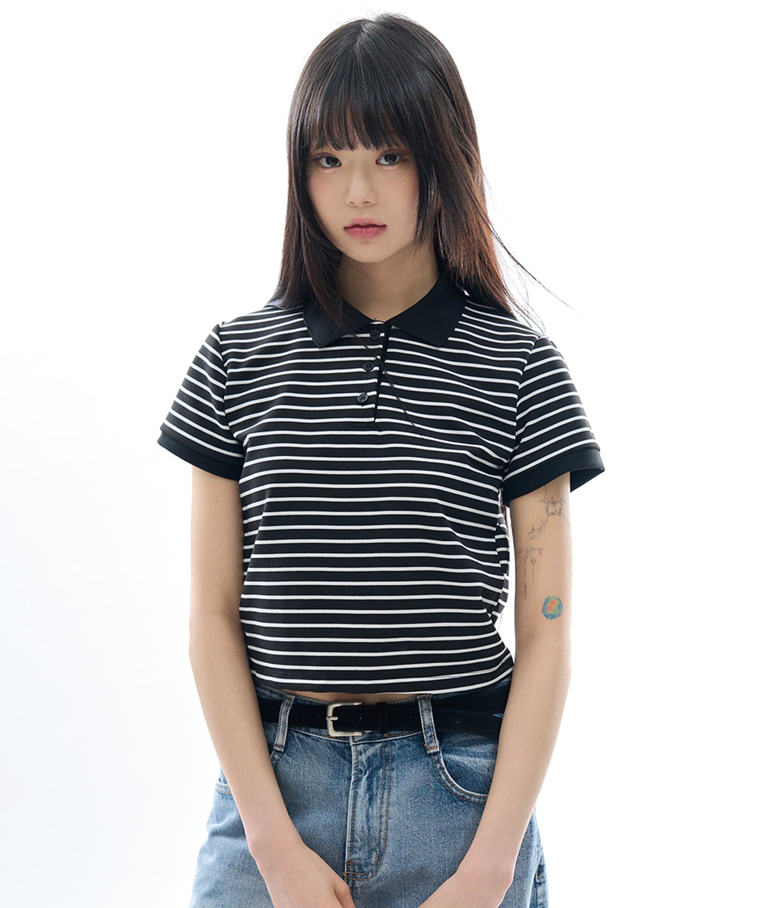 Dover stripe cropped polo tee