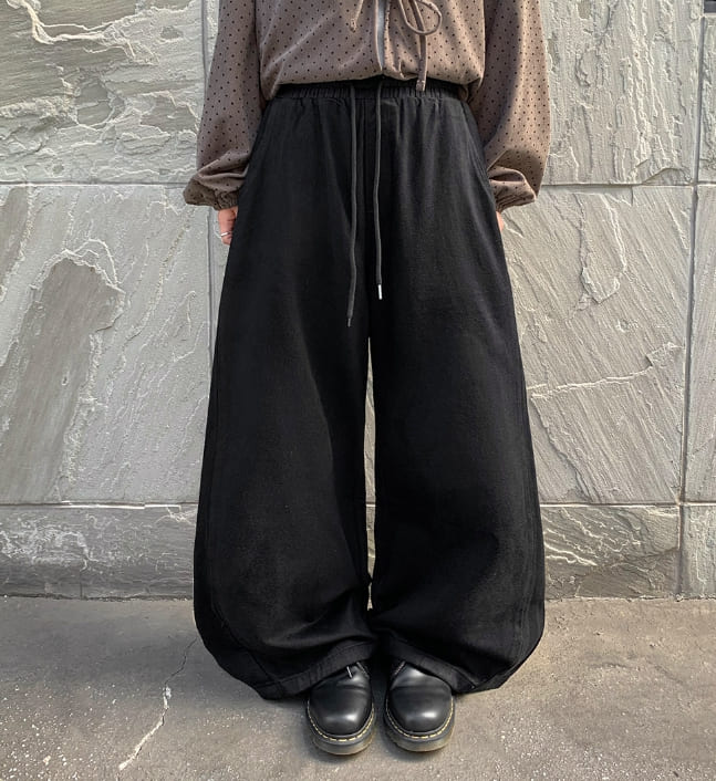 -F2 :ウエスト(ゴム)77-81 ヒップ146 股上35 股下[Long]71.5 / [Short]66.5 もも周り82.6 裾周り63.6 総丈[Long]106.5 / [Short]101.5