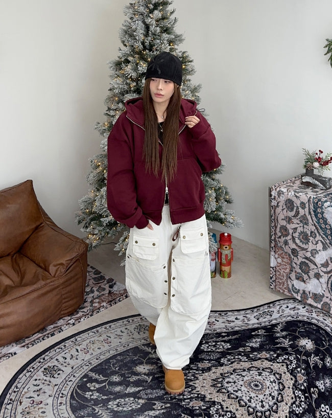 エソハイネック裏起毛フードジップアップ