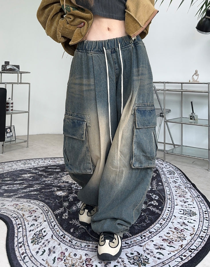 -ONE SIZE (ウエスト(ゴム)70-108 ヒップ136 股上38 股下74 もも周り80 裾周り50 総丈112)