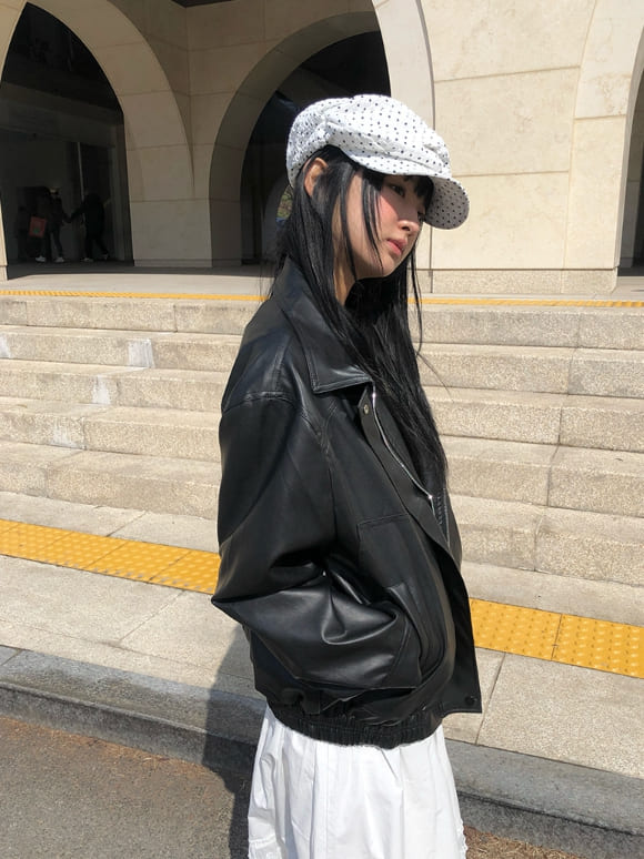 エチンオーバーフィット襟付きブルゾンレザージャケット
