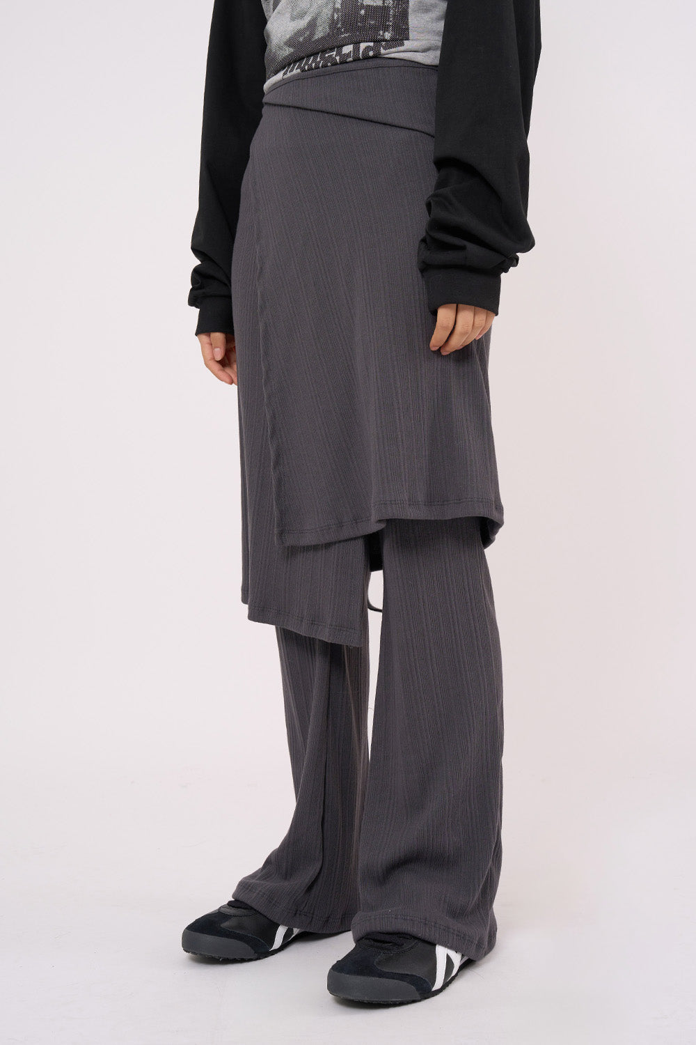 Flow skirt layered bootcut pants
