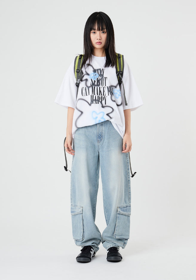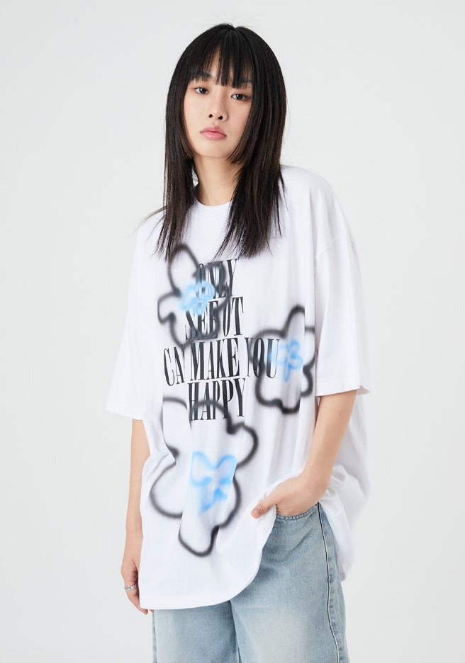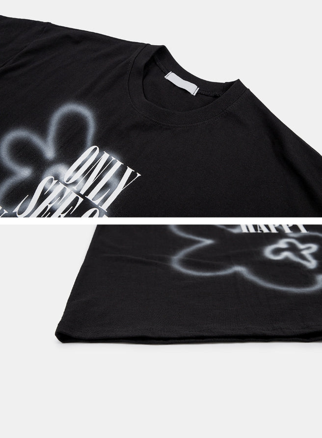 フラワースプレープリンティングオーバーTシャツ