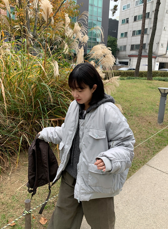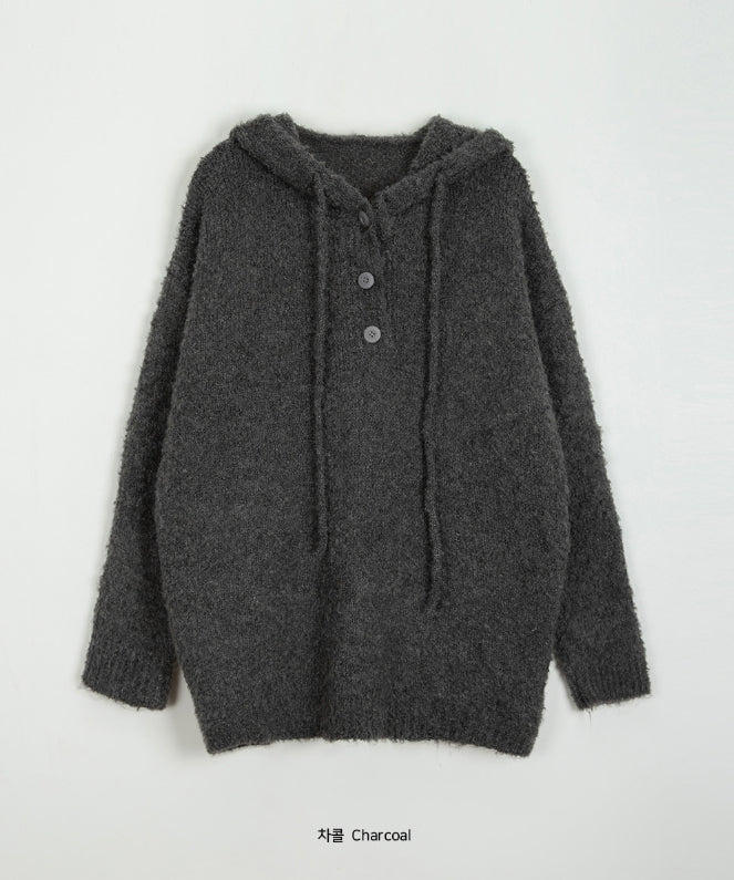 Fman Boucle Half-Open Wool Hood Knit - Wool 50