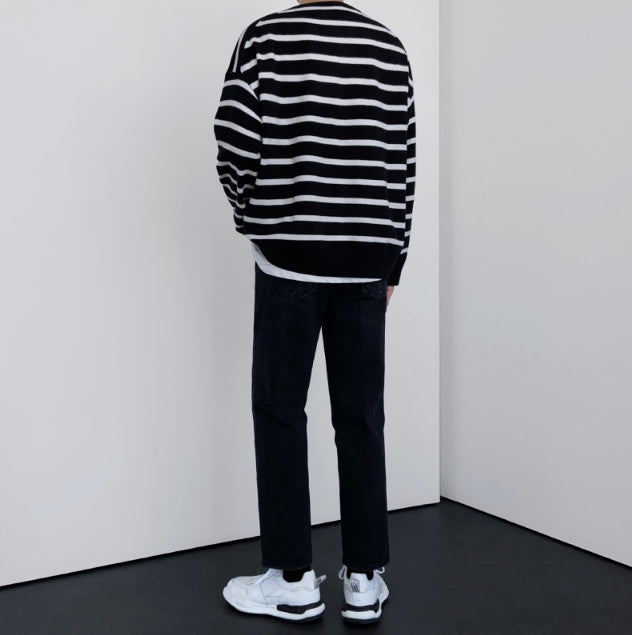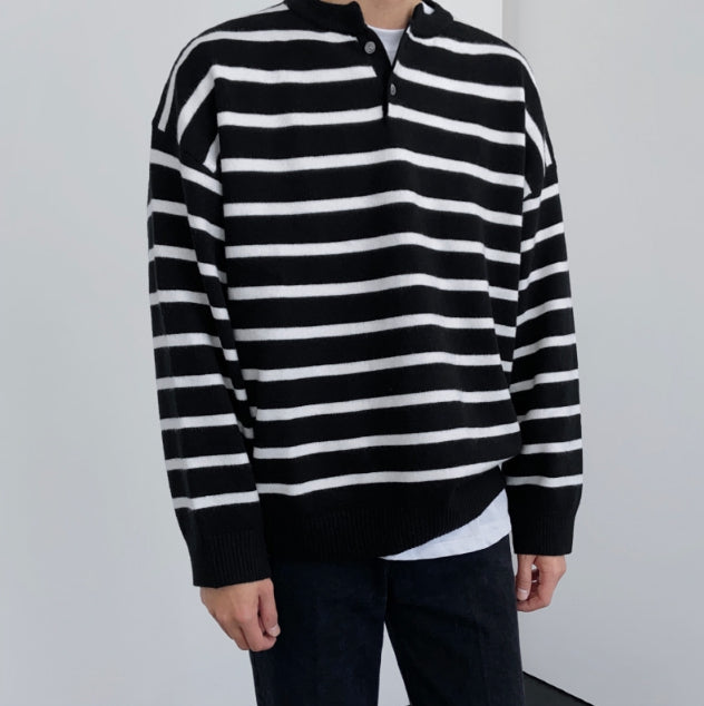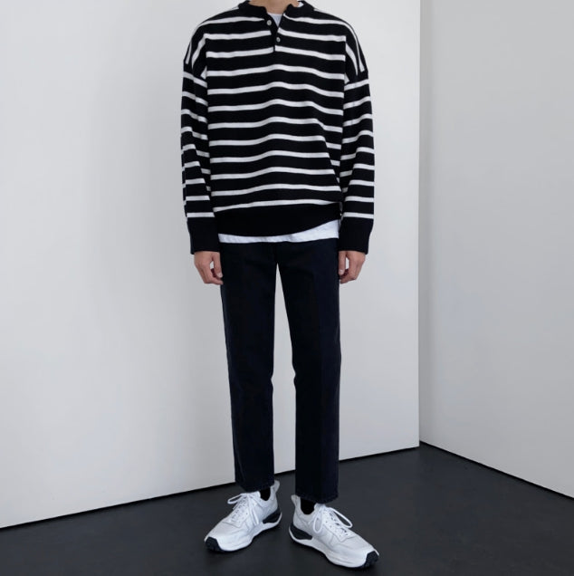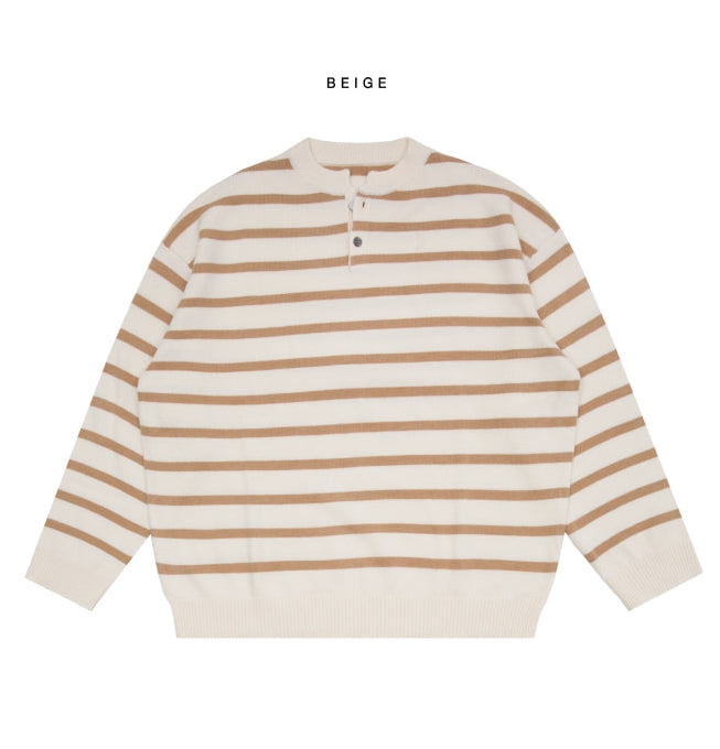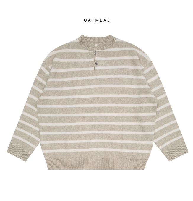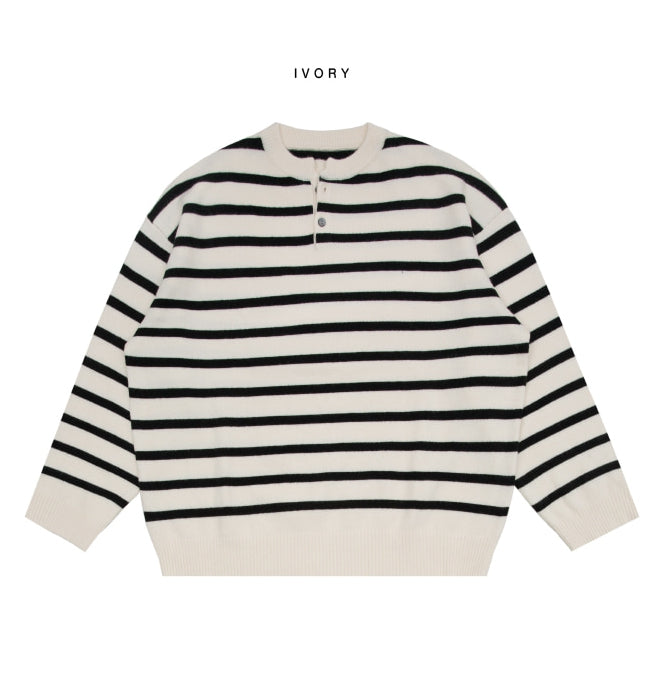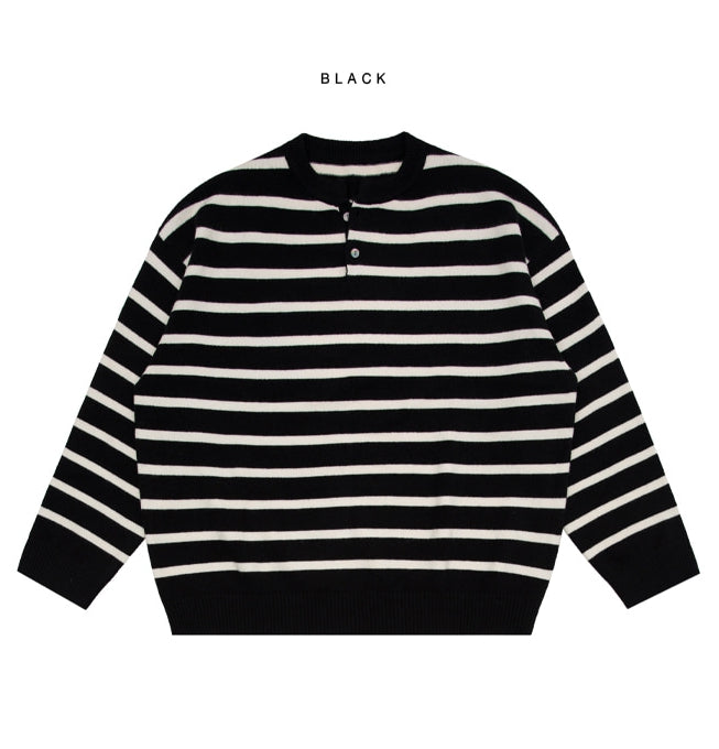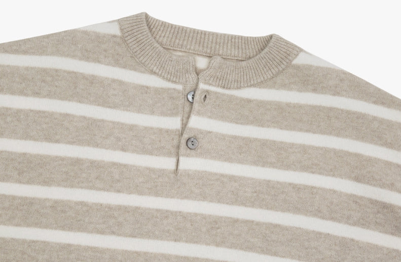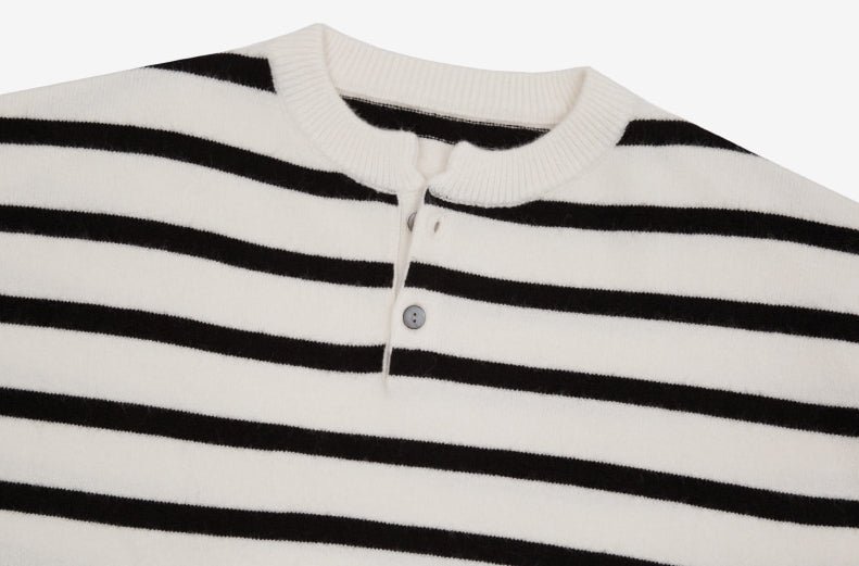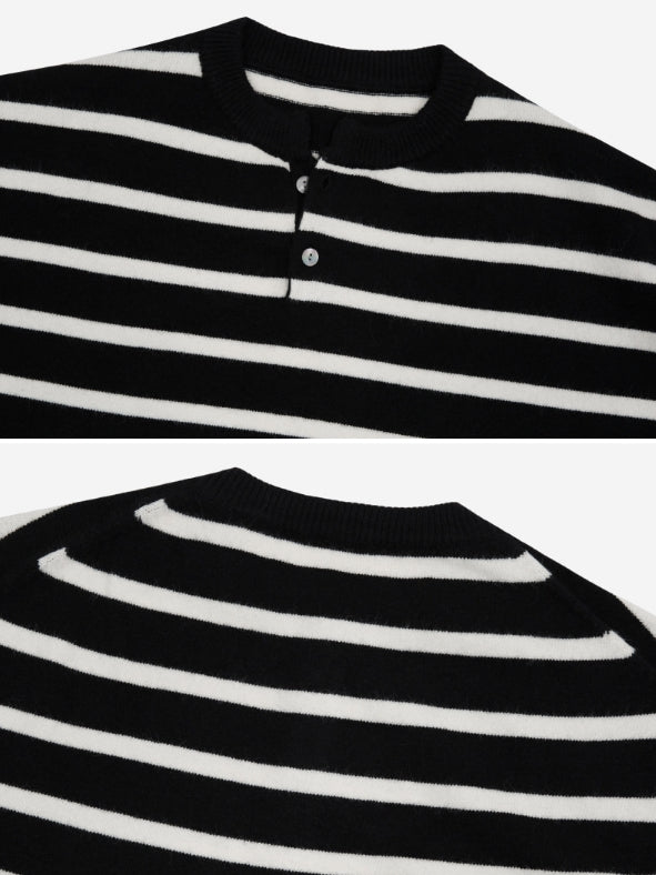 Fuzz Stripe Henley Neck Knit