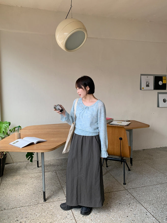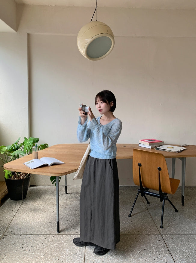 ジェルクイナイロンストリングバンディングスリットロングスカート