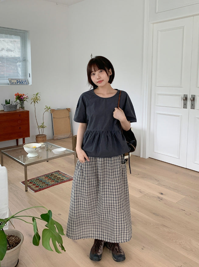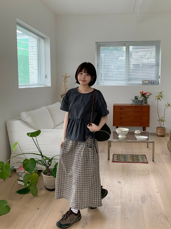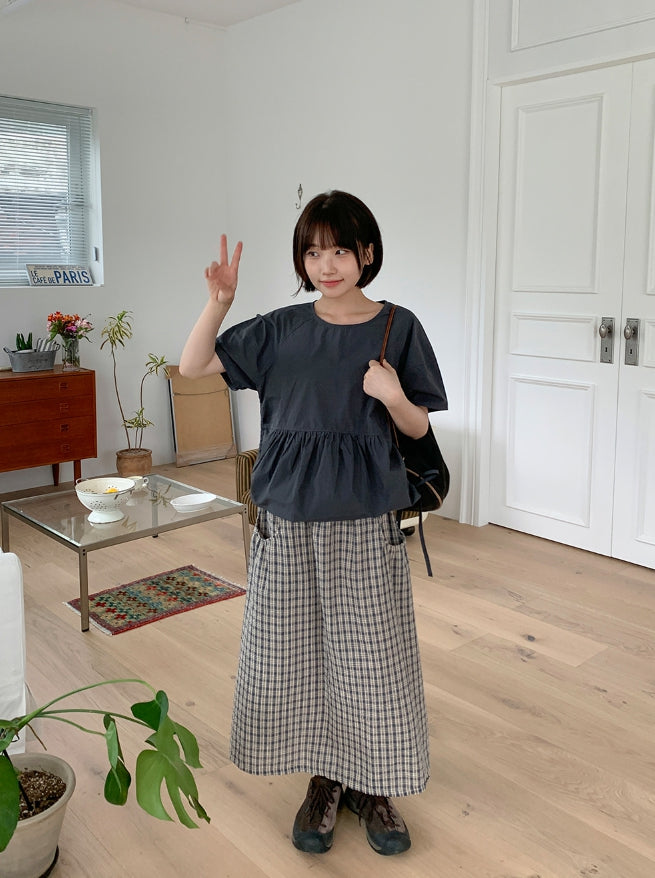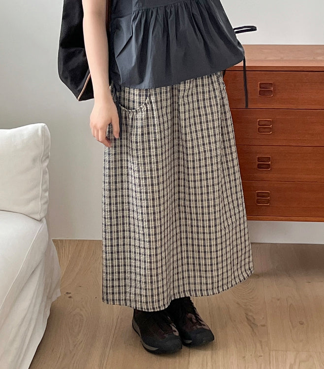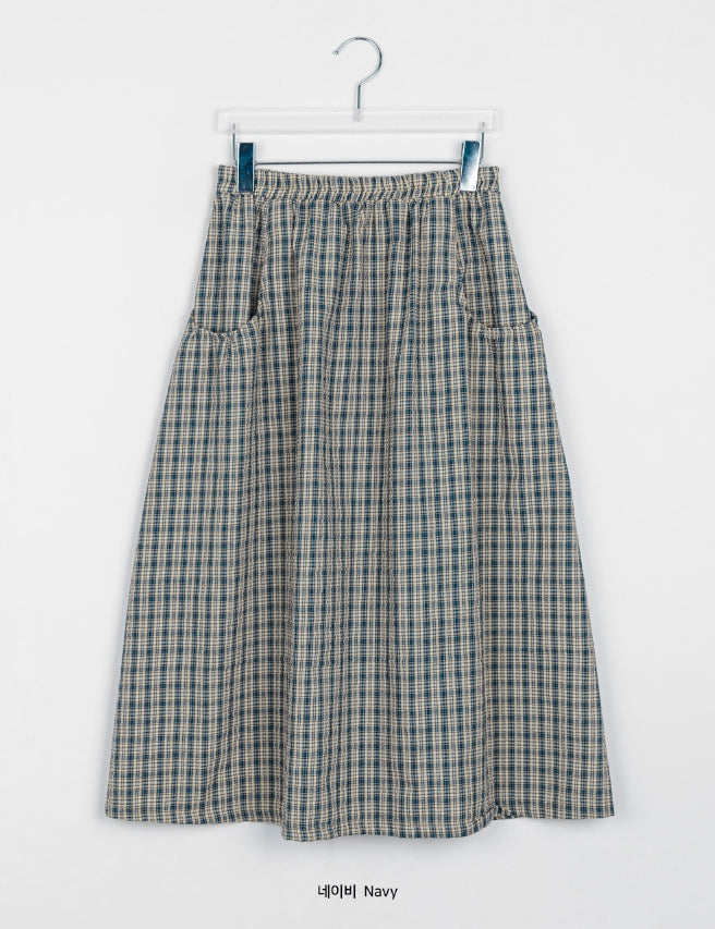 ジェンテューシアサッカーチェックポケットバンディングロングスカート