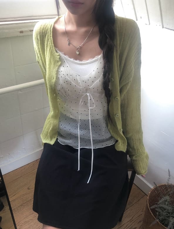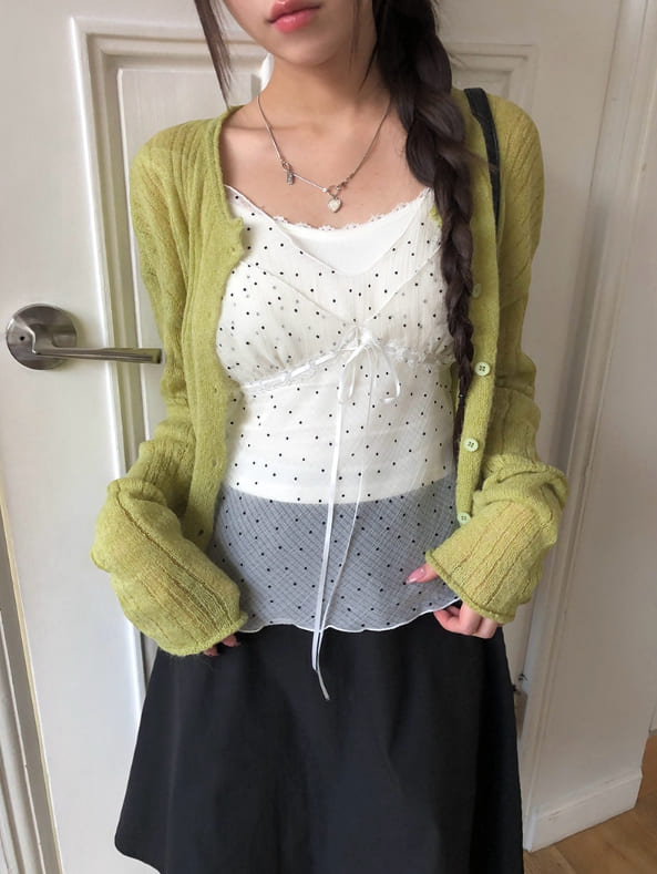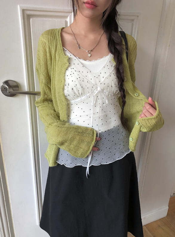 Gron Soft Scratch Wool See-Through Knit Cardigan