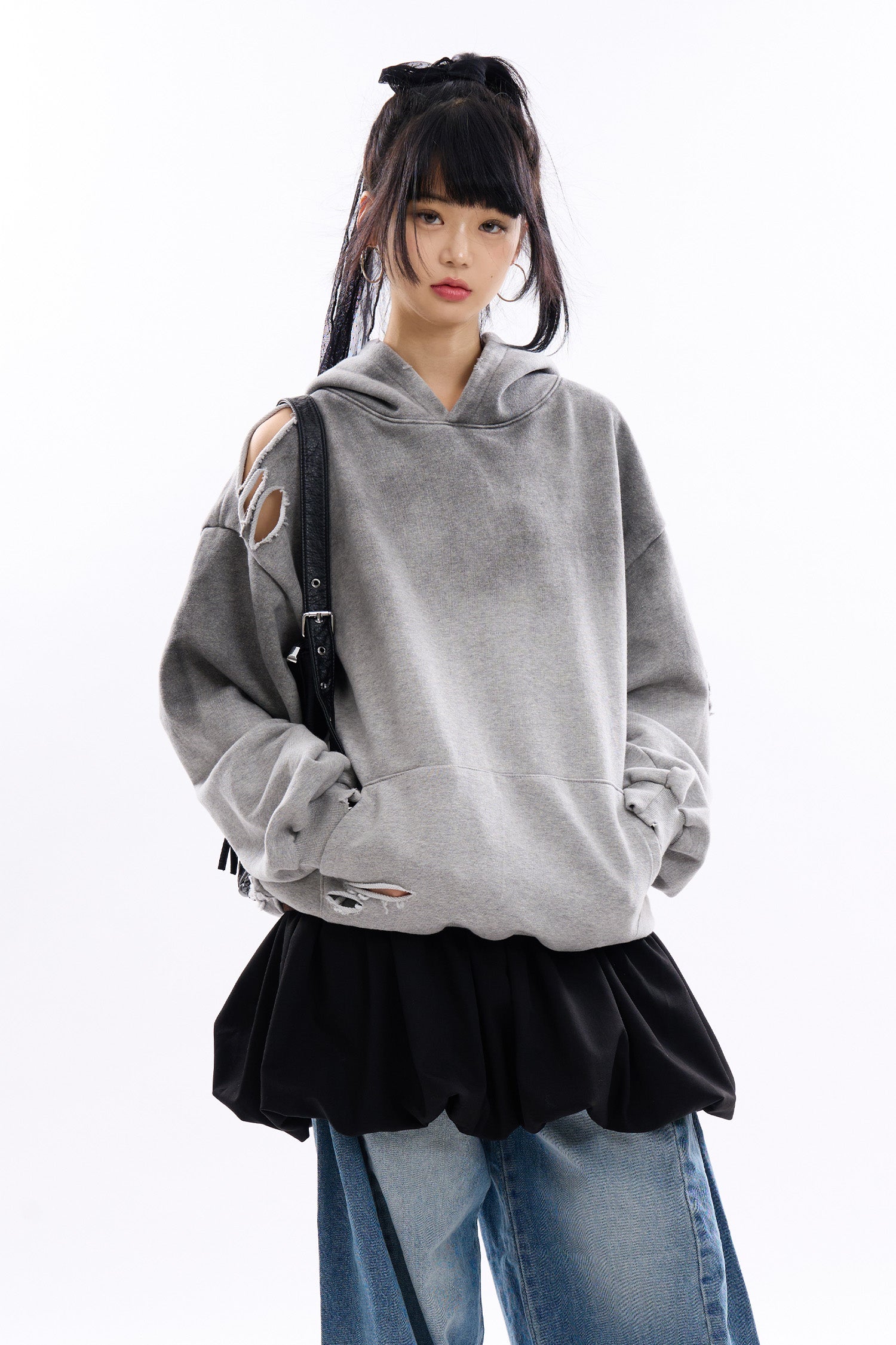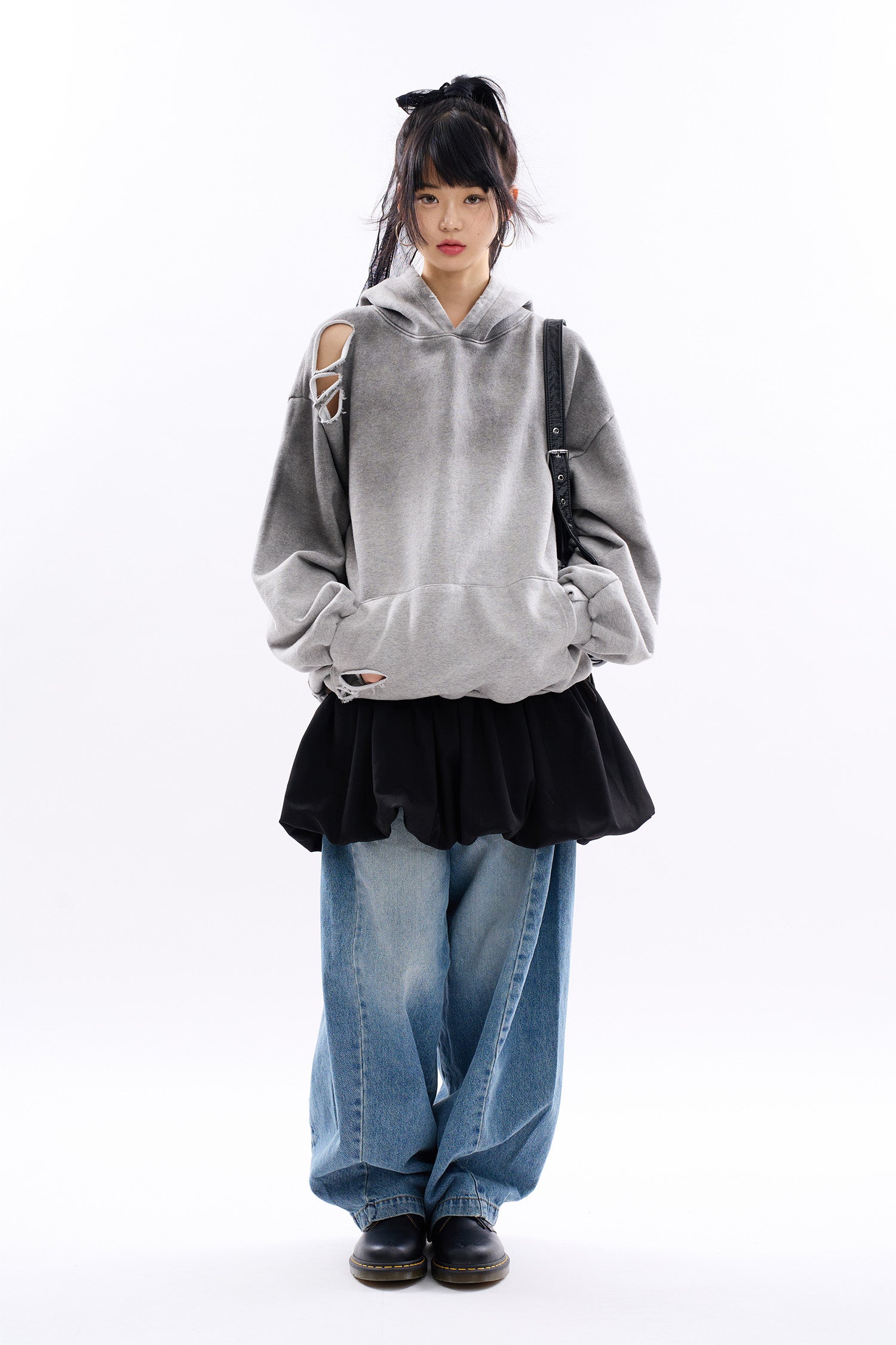 グルービーカットアウトダーティウォッシュ加工パーカー