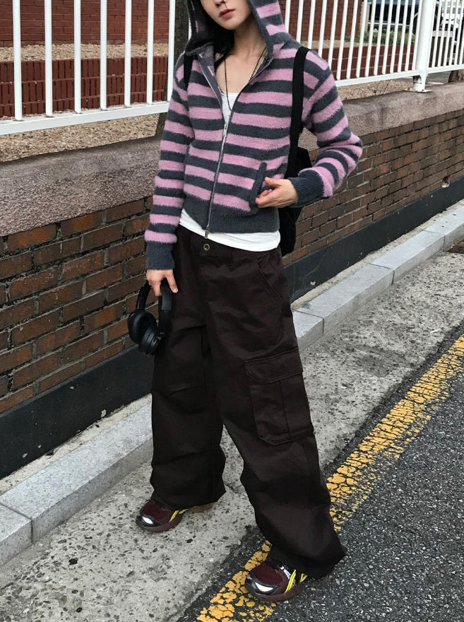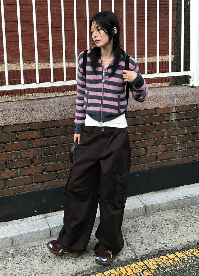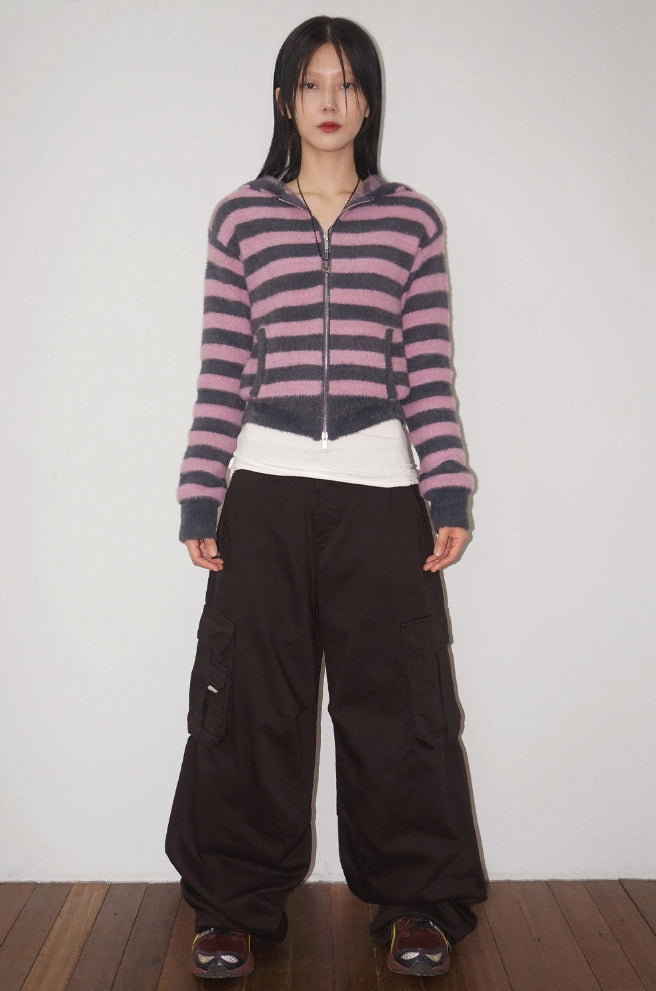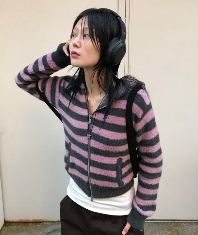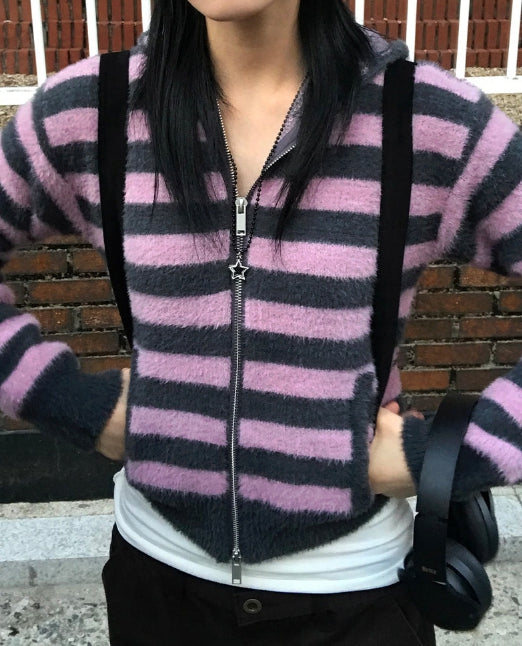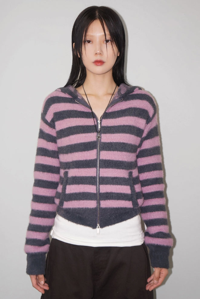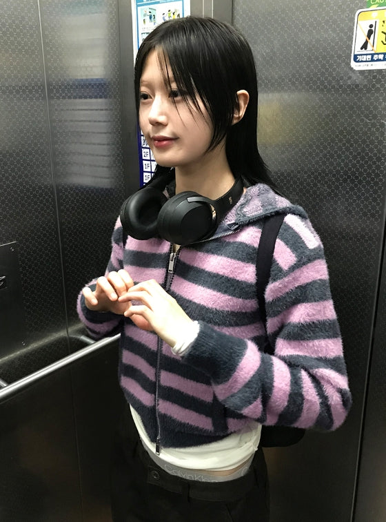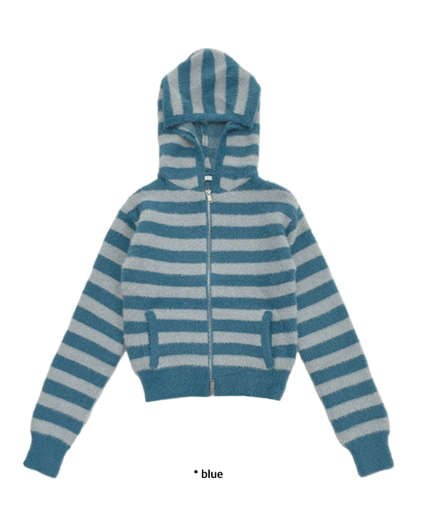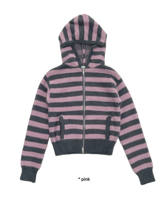 HAIRY STRIPE HOOD ZIP-UP