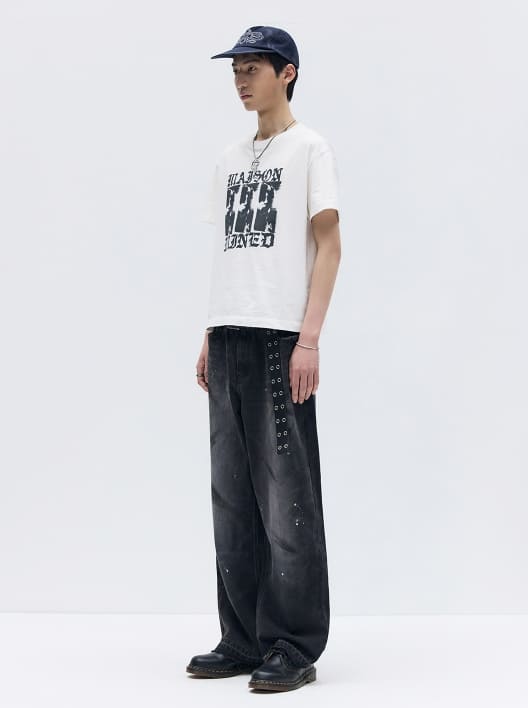 -M (ウエスト85 ヒップ- 股上34 股下75 もも周り74.8 裾周り54 総丈109)