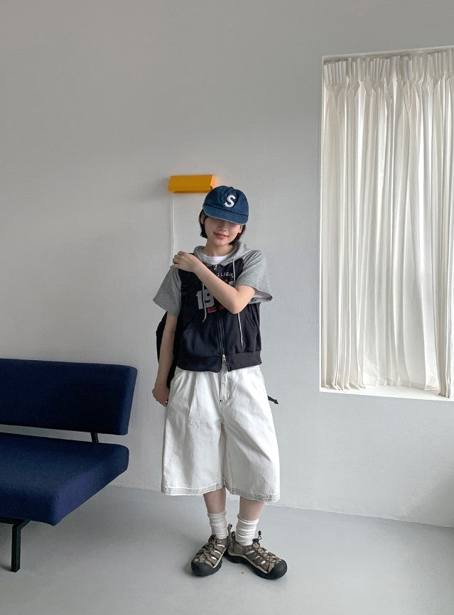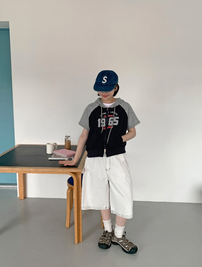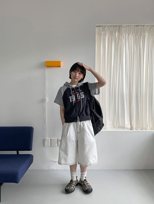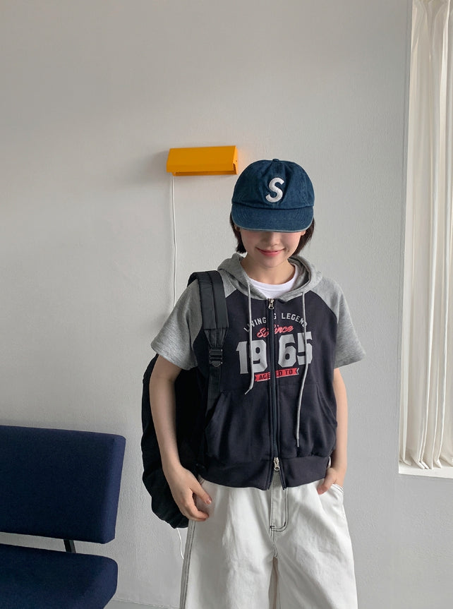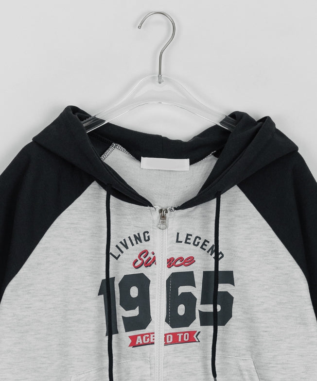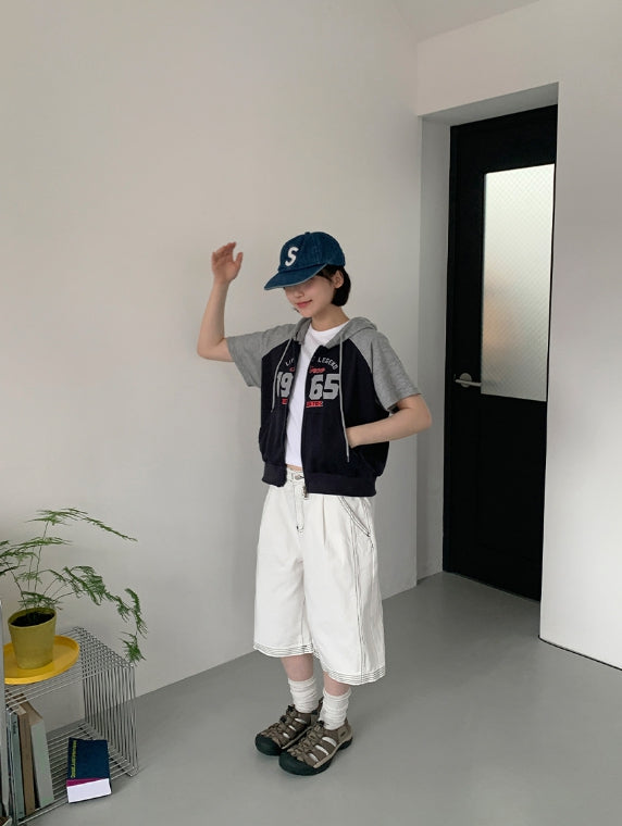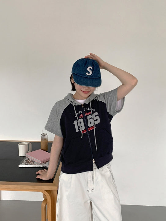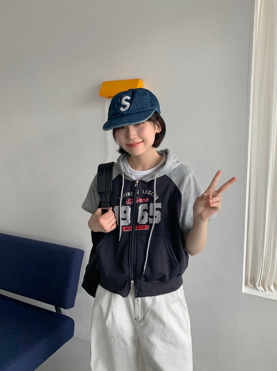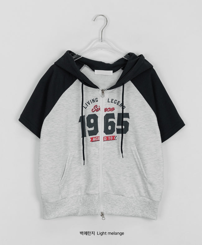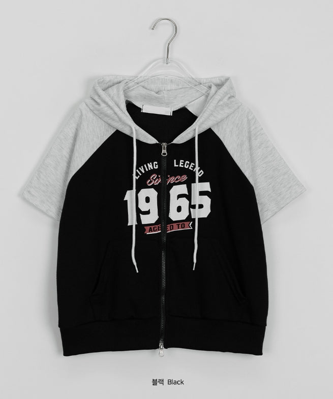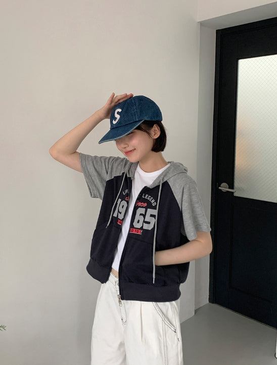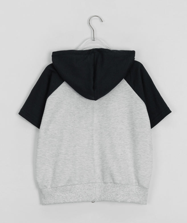 ヘイルレタリングクロップツーウェイ半袖フードジップアップ