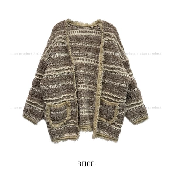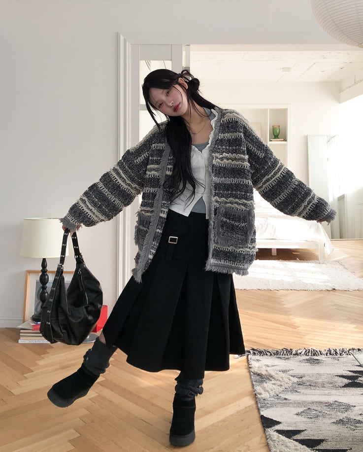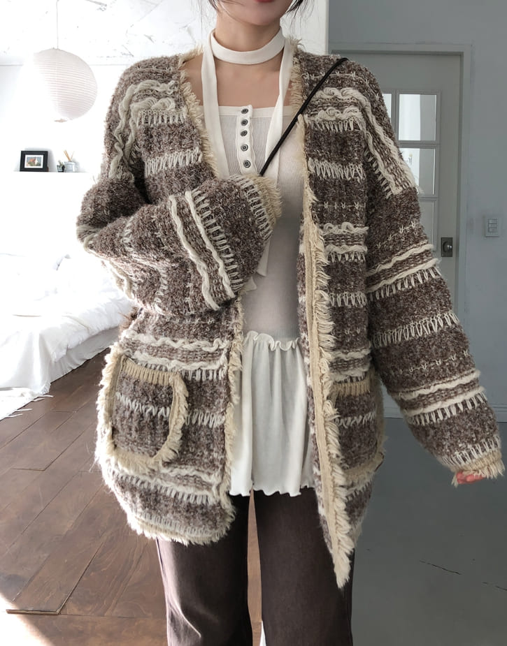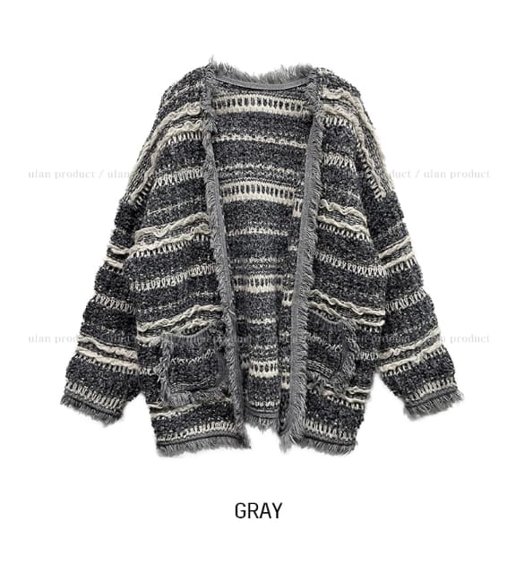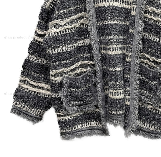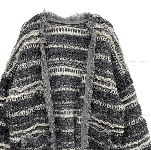 ヒアボヘミアンフリンジツイードカーディガン