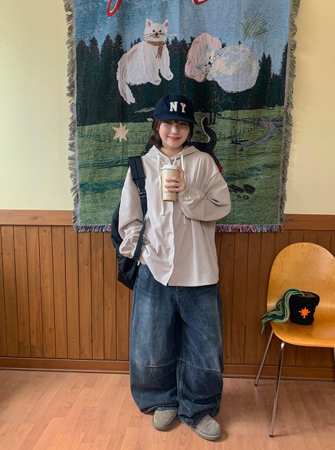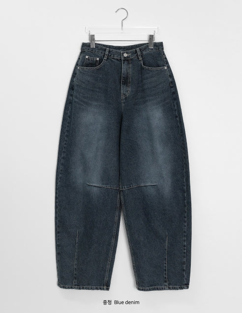 ホキニウォッシュ加工バルーンワイドデニムパンツ