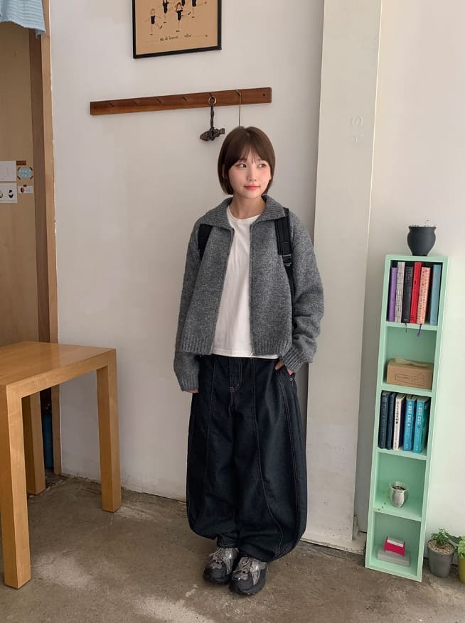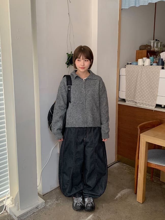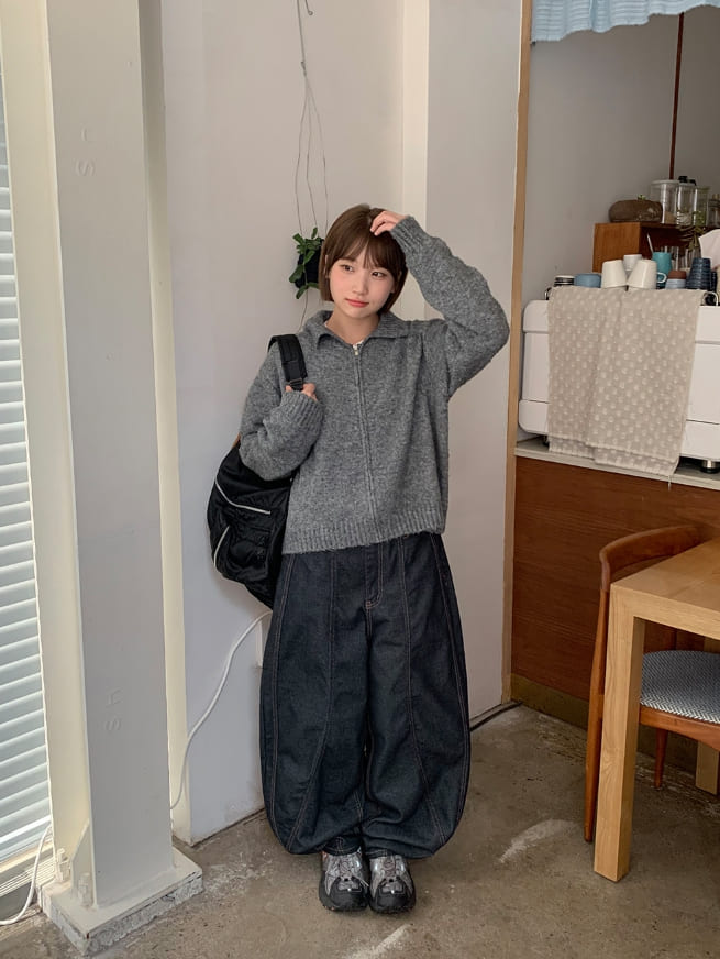 Homley Boucle Wool Collar Zip-Up Knit Cardigan