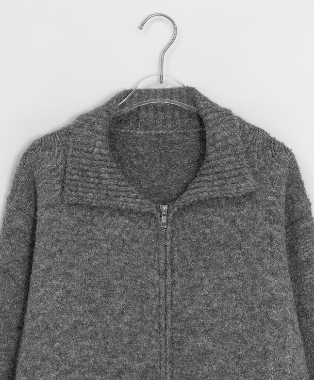 ホムリーブークレウール襟付きジップアップニットカーディガン