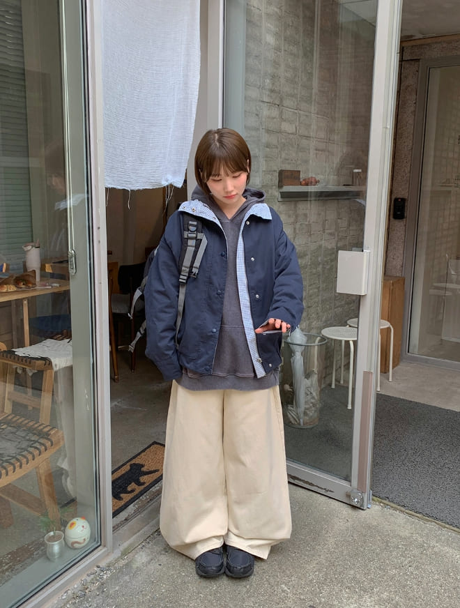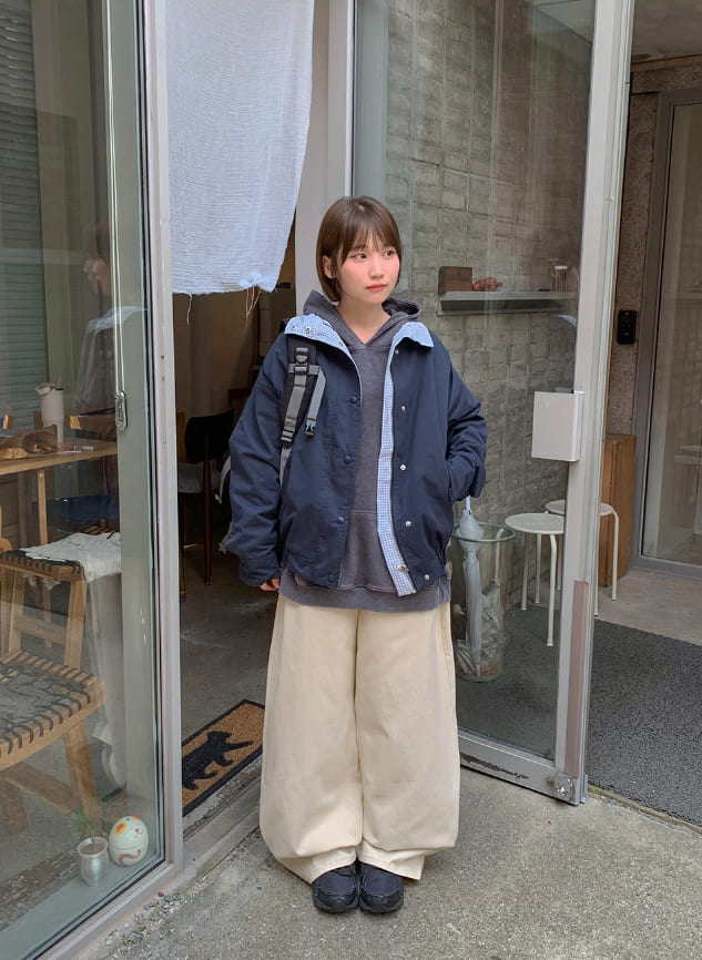 ホトリチェックリバーシブルブルブルゾンジャンパー
