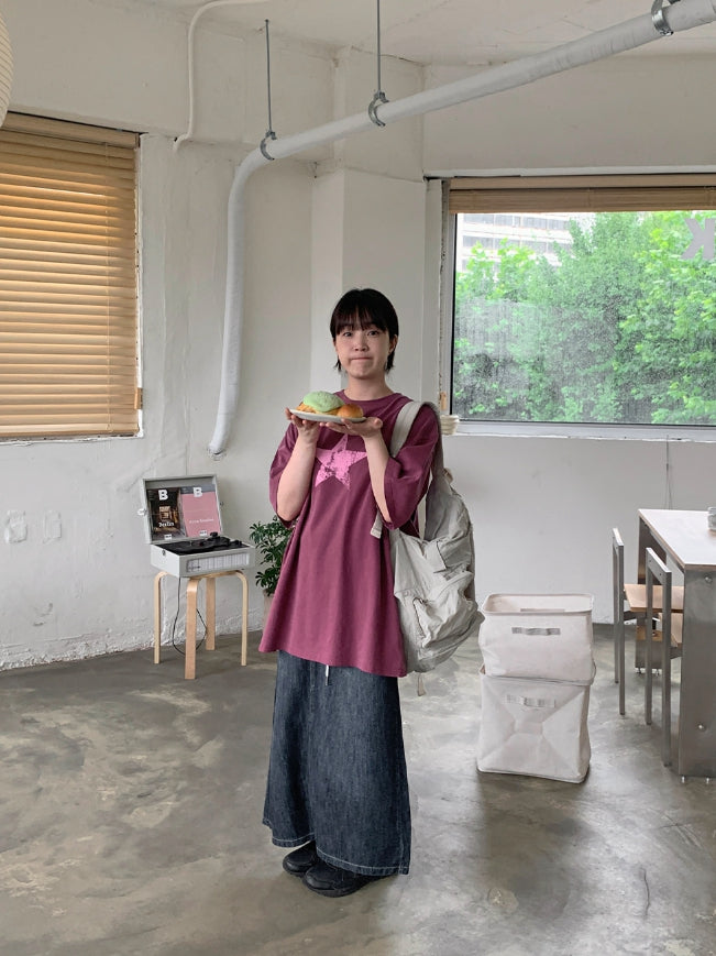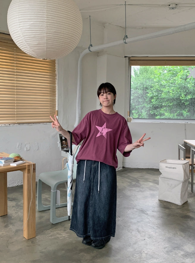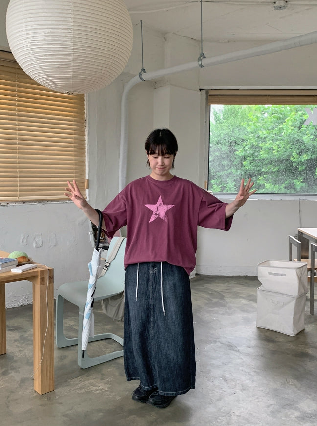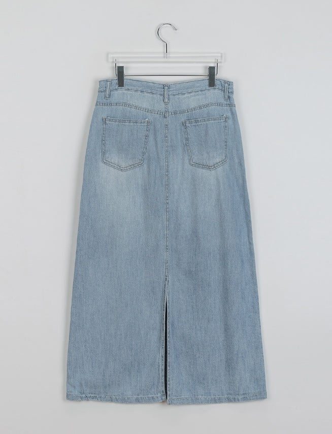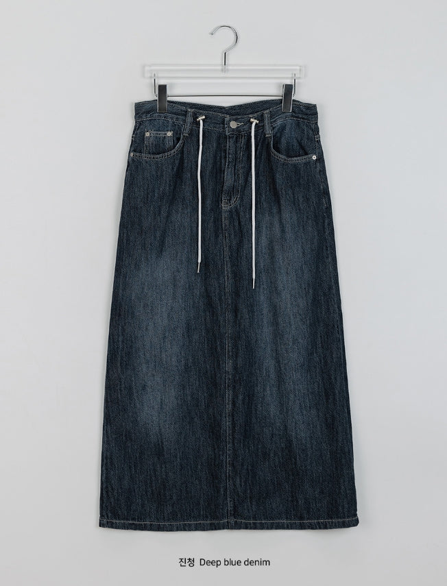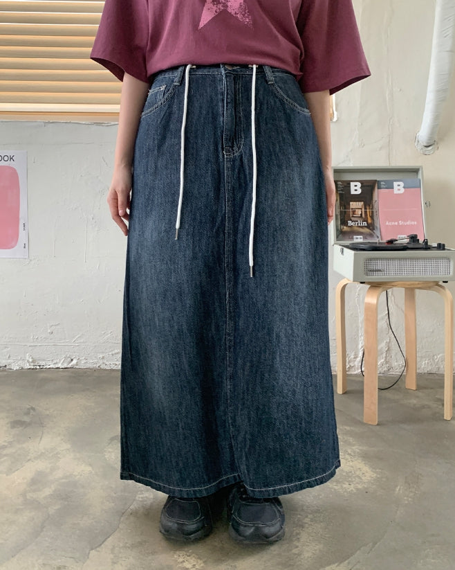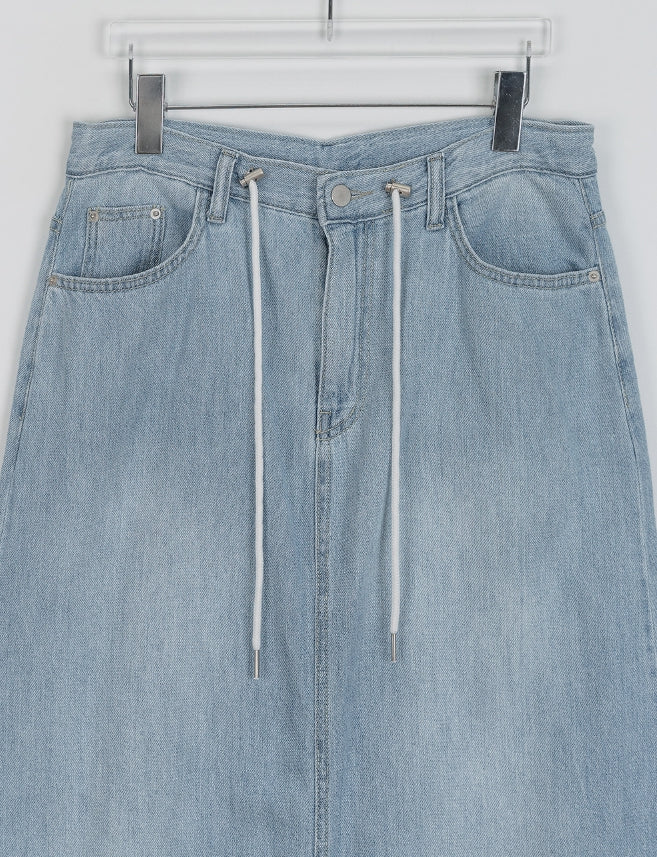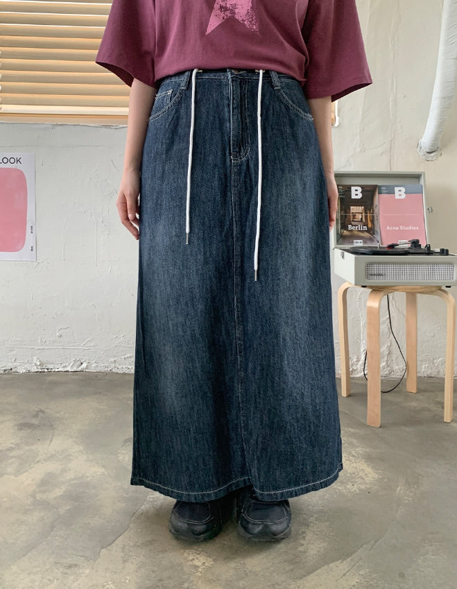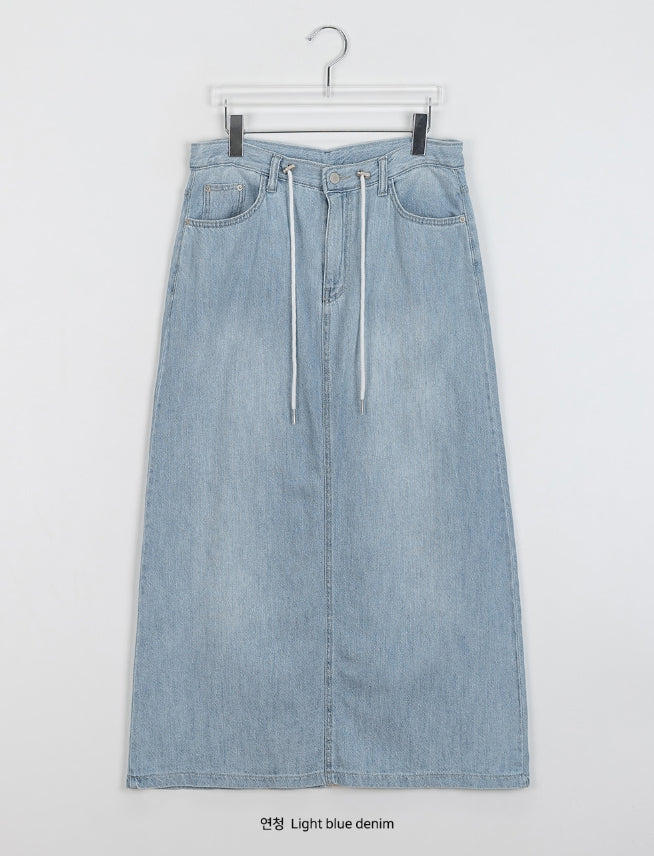 フルンサマーストリングウォッシングデニムスリットロングスカート