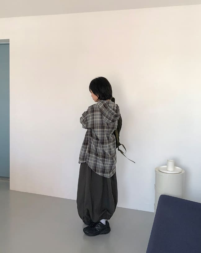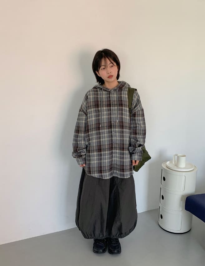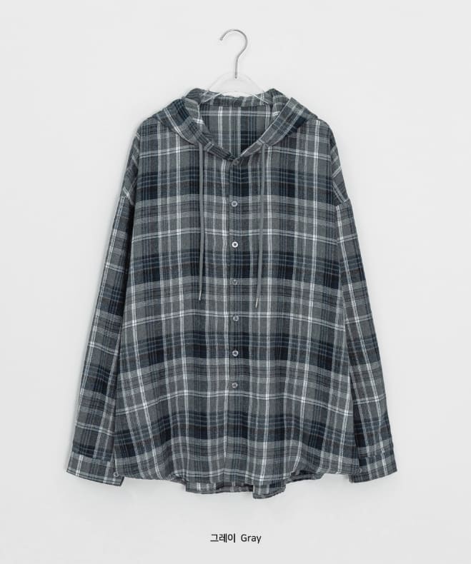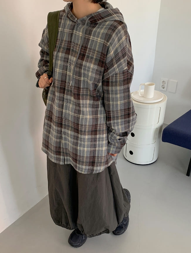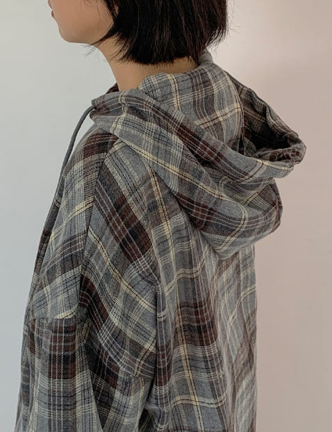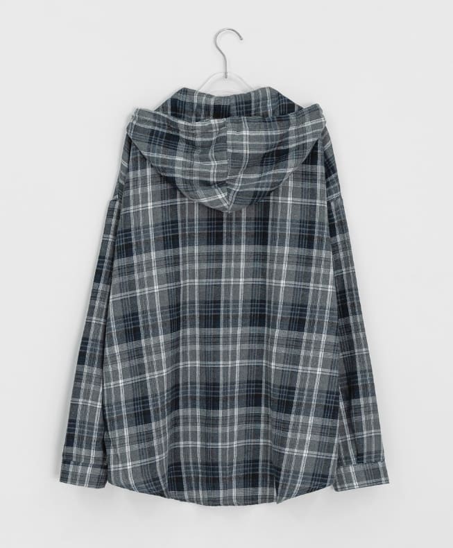Hyukenli Check Over Hood Long Sleeve Shirt