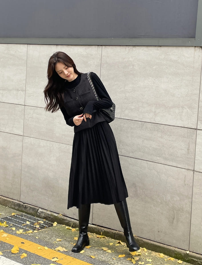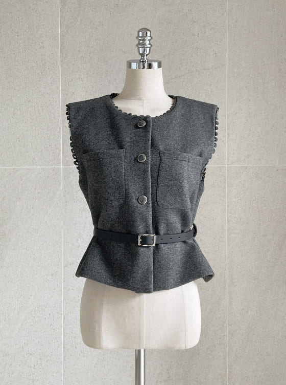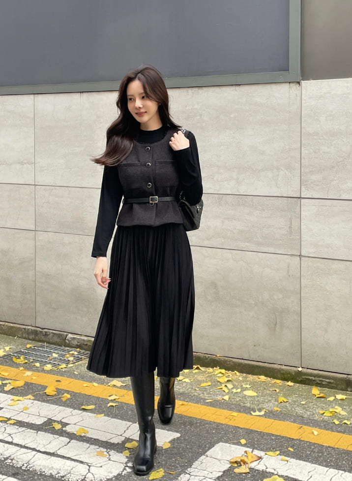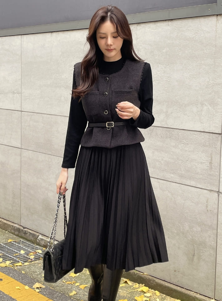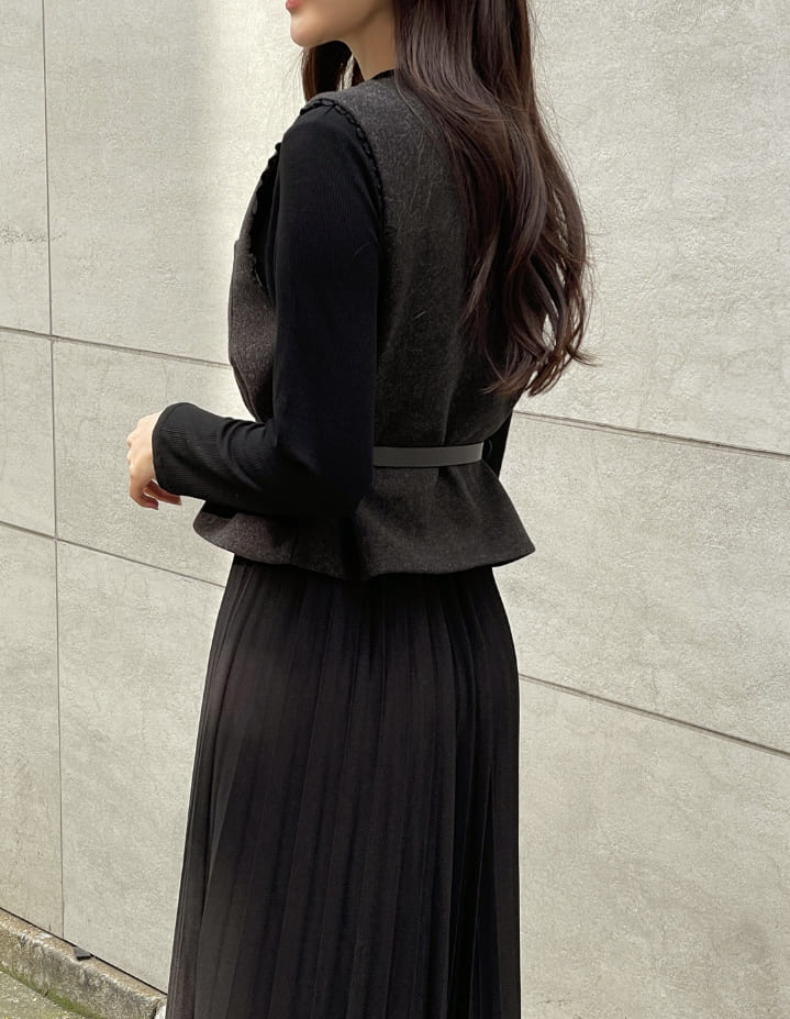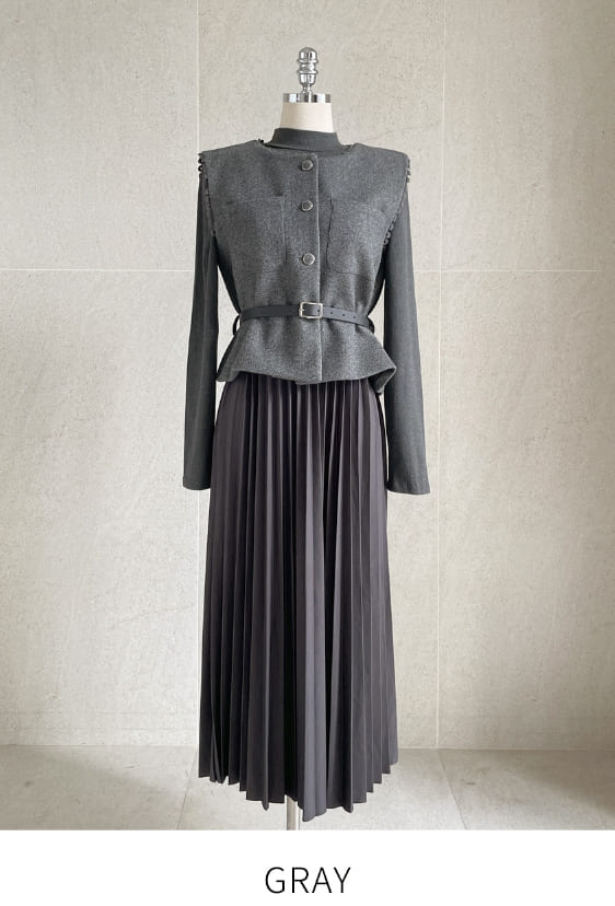 Jewel Vest Combi Pleated One Piece Set (Belt Set)