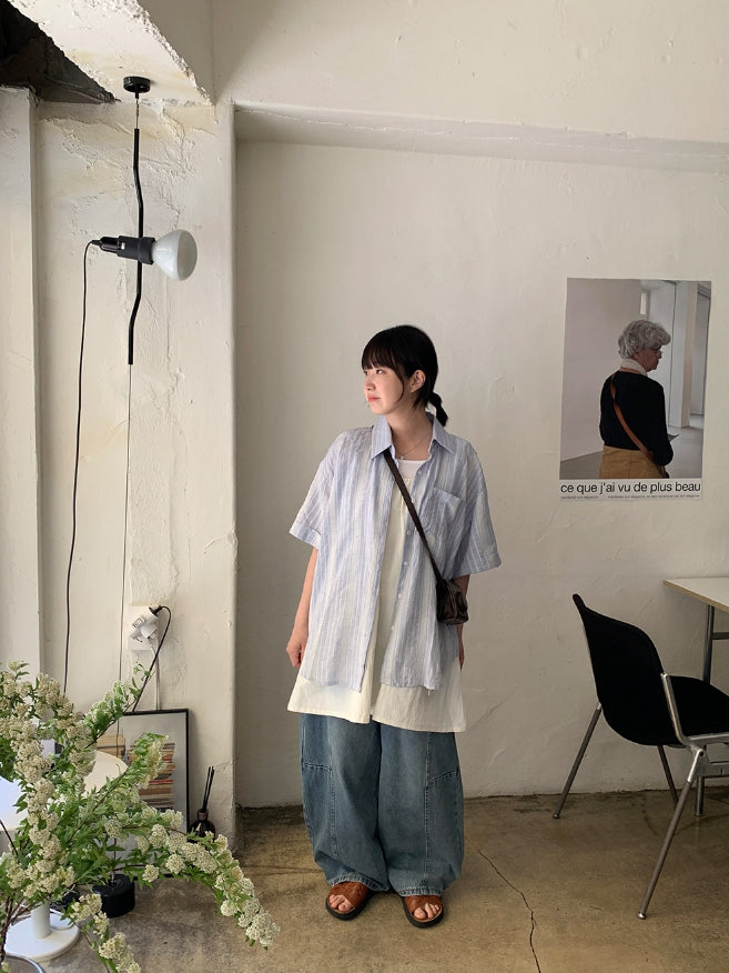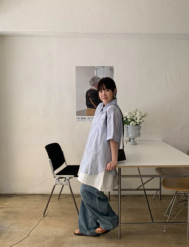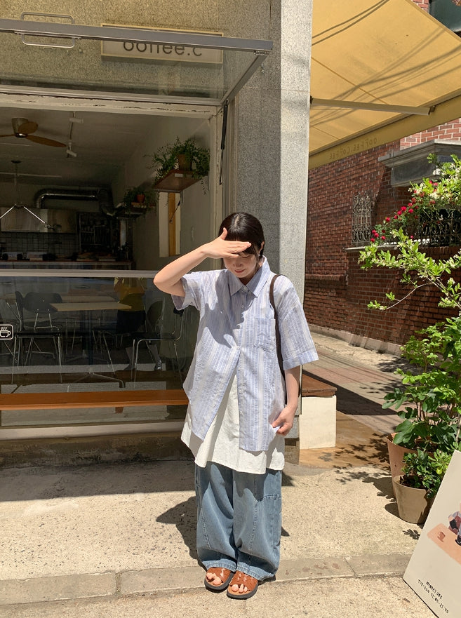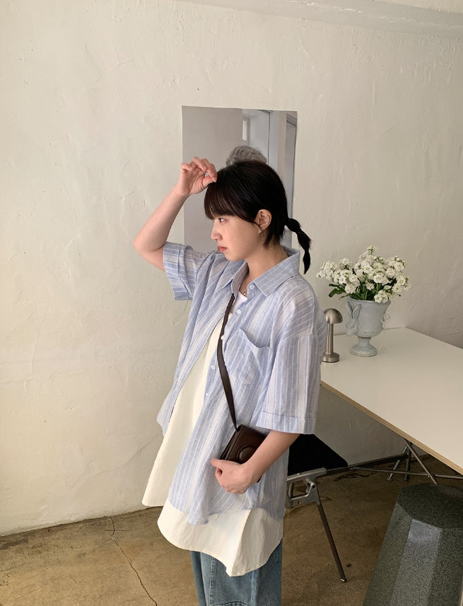 Jyuimi Summer Stripe Roll-up Over Short Sleeve Shirt