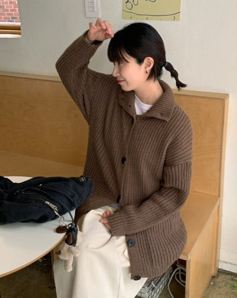 カクイハイネックニットカーディガン