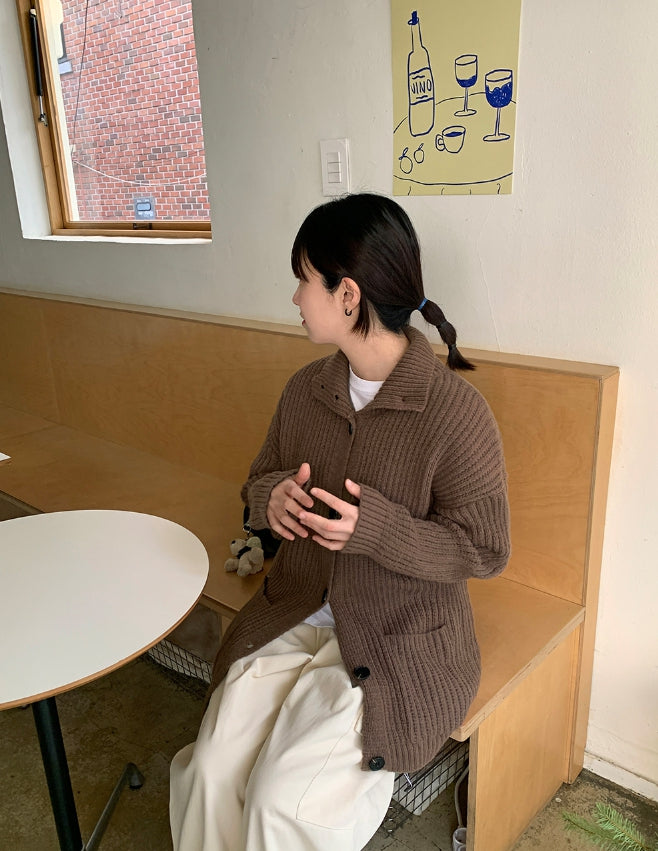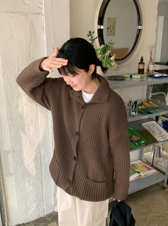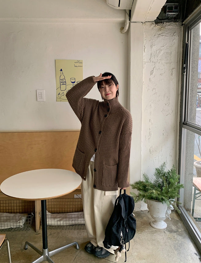 Kakui high neck knit cardigan