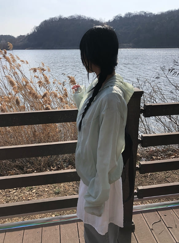 カリン斜めファスナーウインドブレーカーストリングフードジャケット