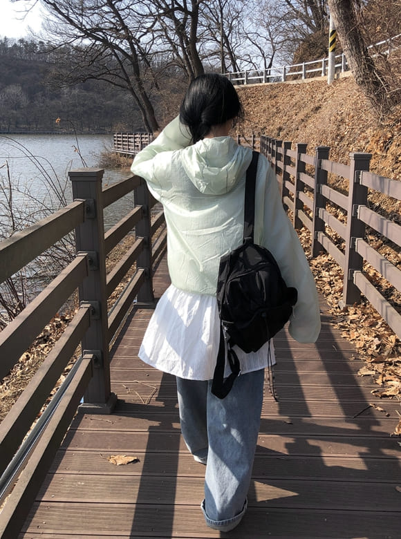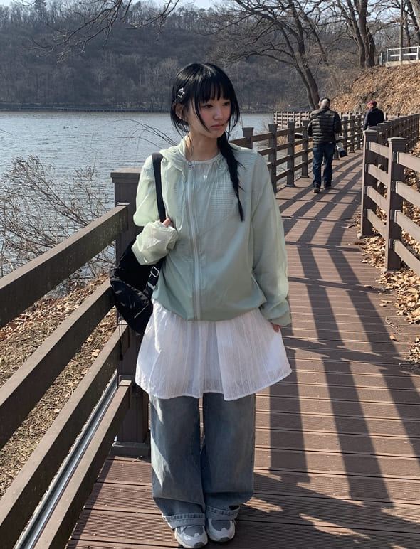 Karin Diagonal Zipper Windbreaker String Hood Jacket