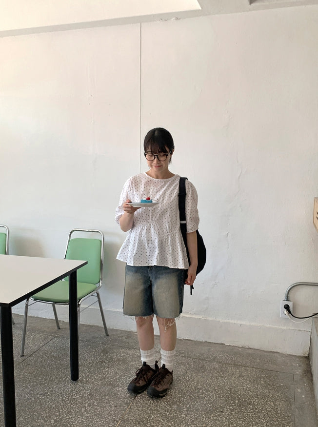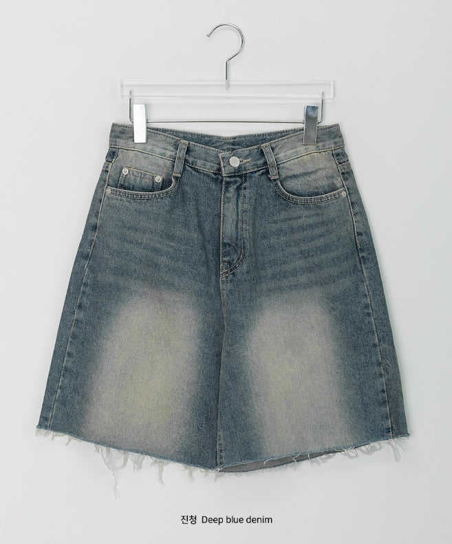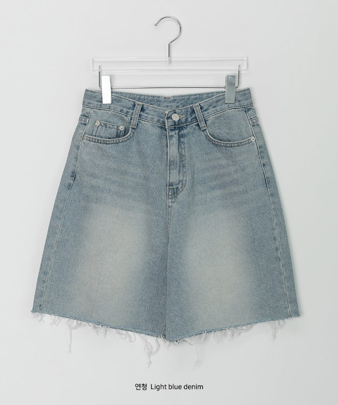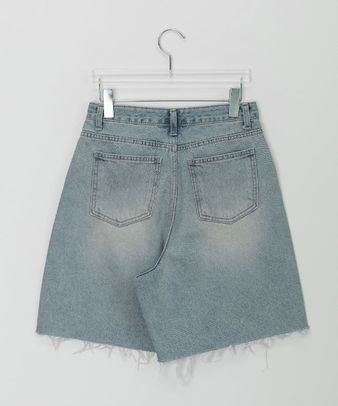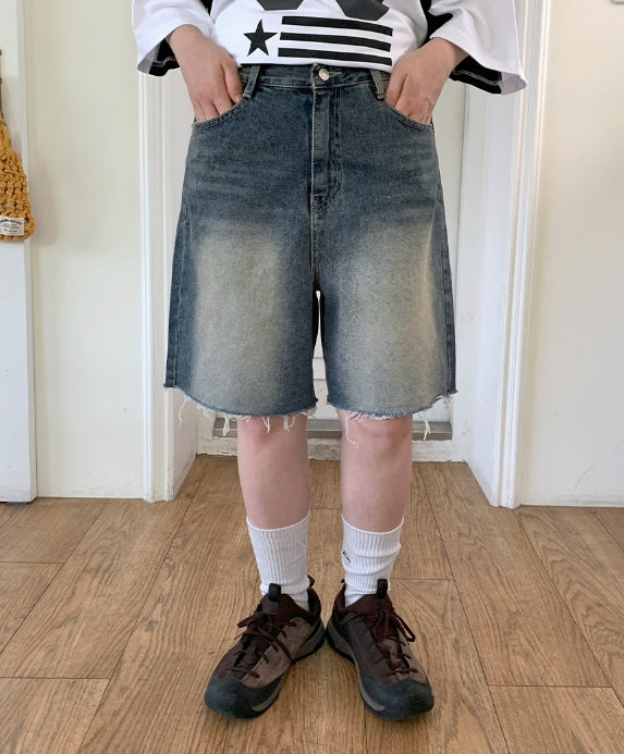 カヤチダメージウォッシュ加工バミューダデニムパンツ