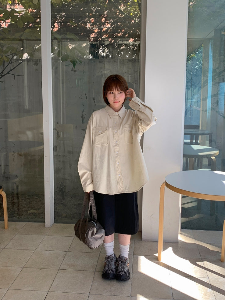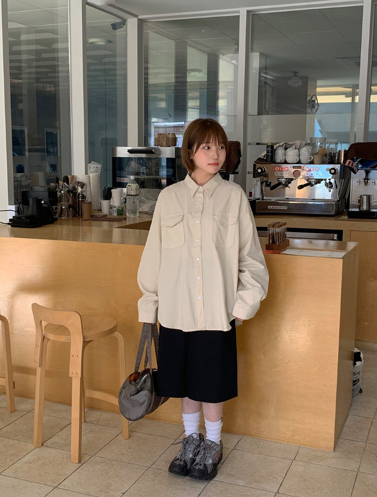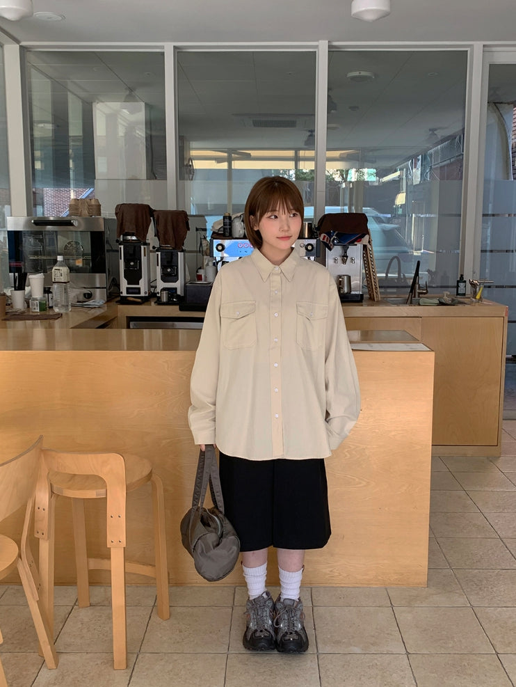 Kemma Color Cotton Pocket Long Sleeve Shirt