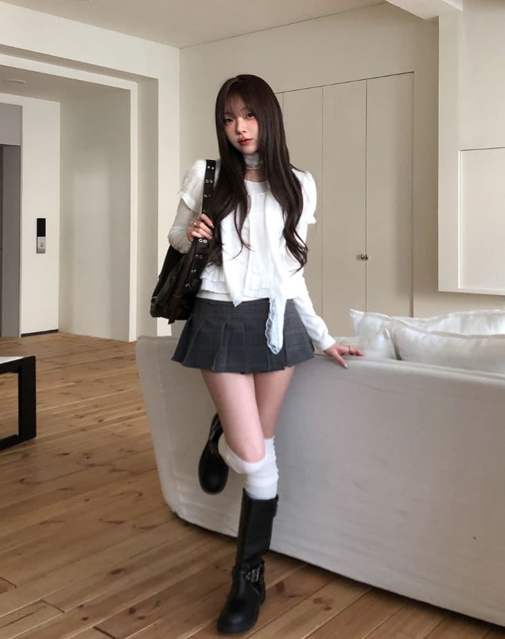 Kido Check Pleated Mini Skirt