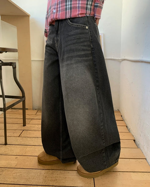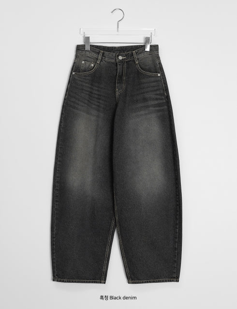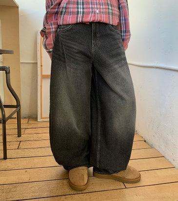 キンノイウォッシュ加工バルーンワイドデニムパンツ