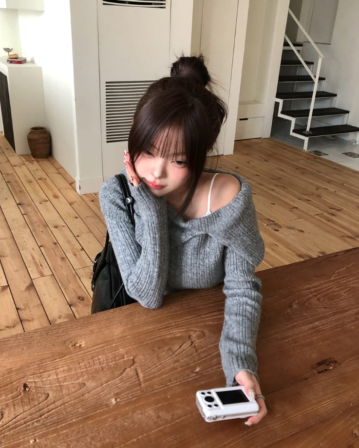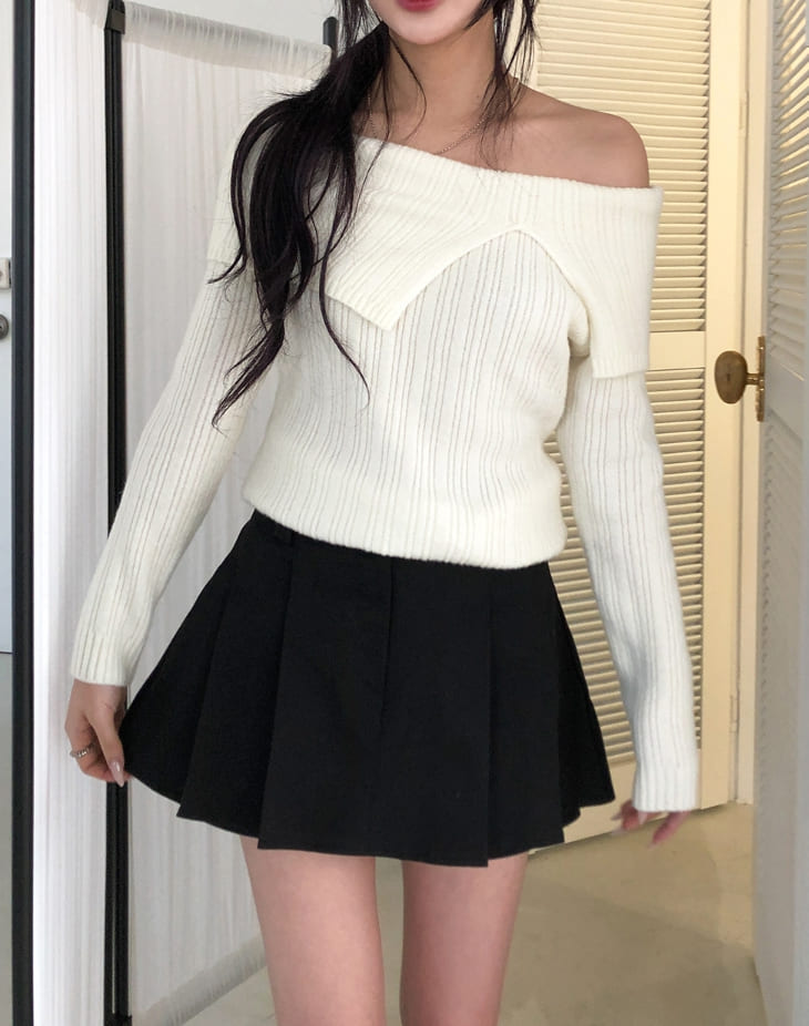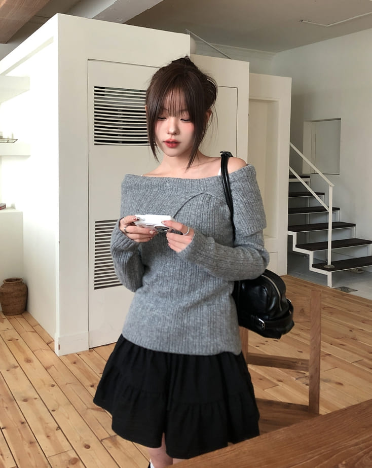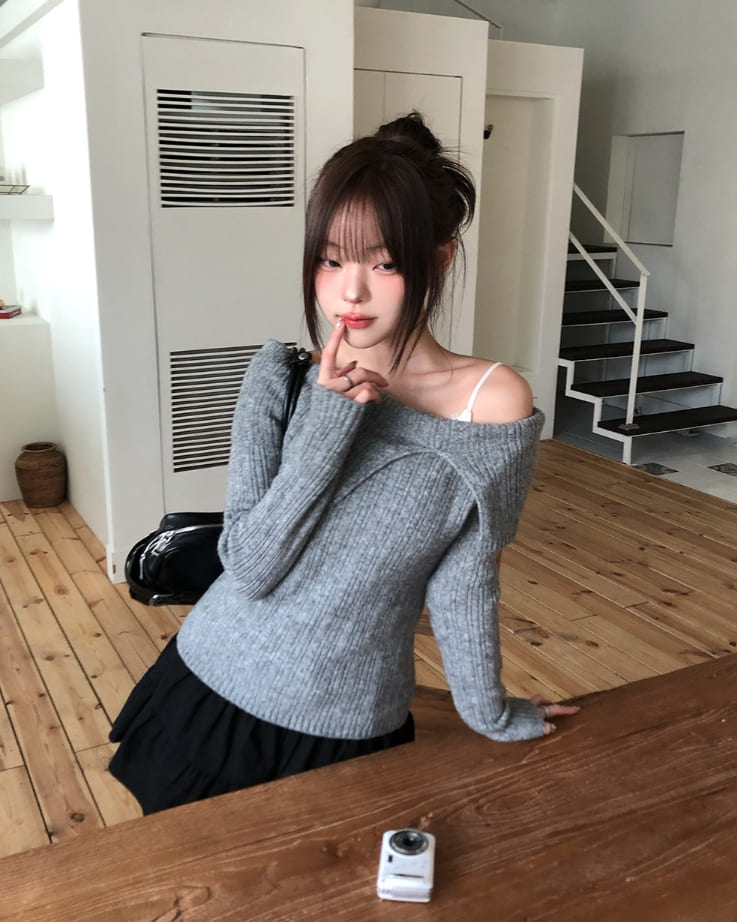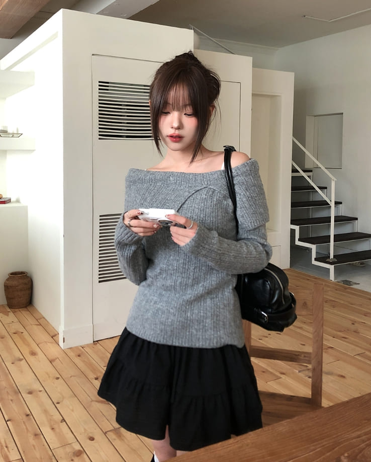 Kishi Ribbed Slit Off-Shoulder Knit