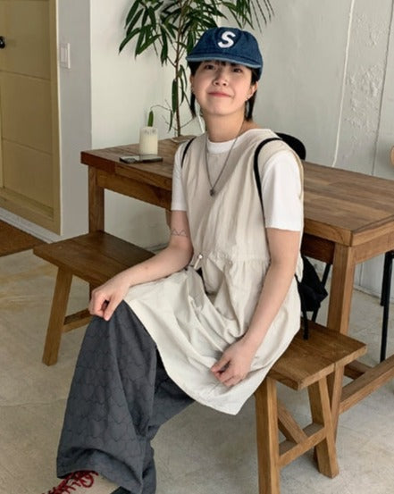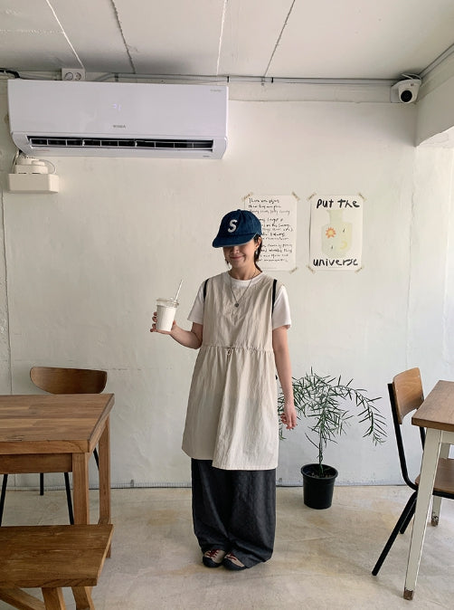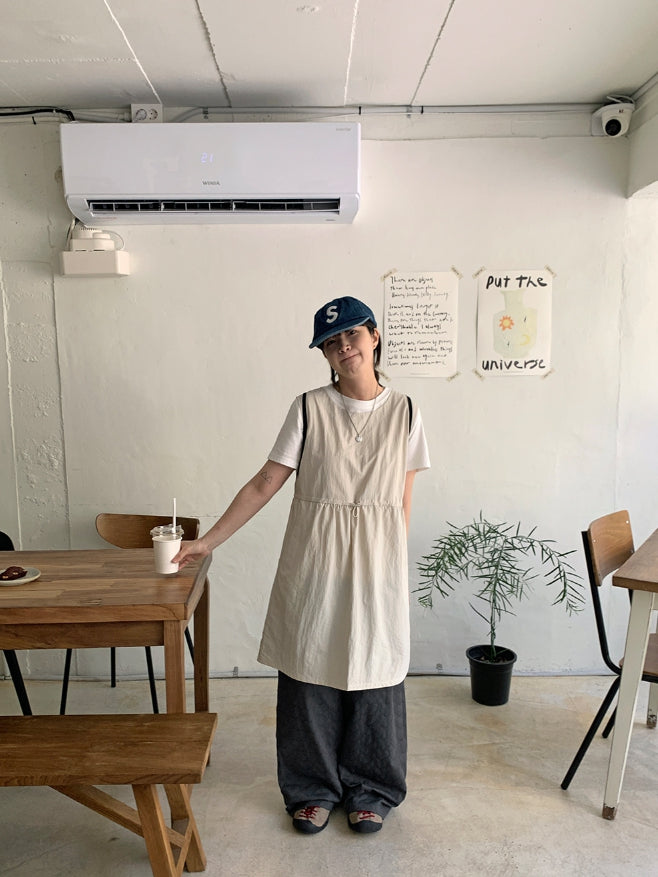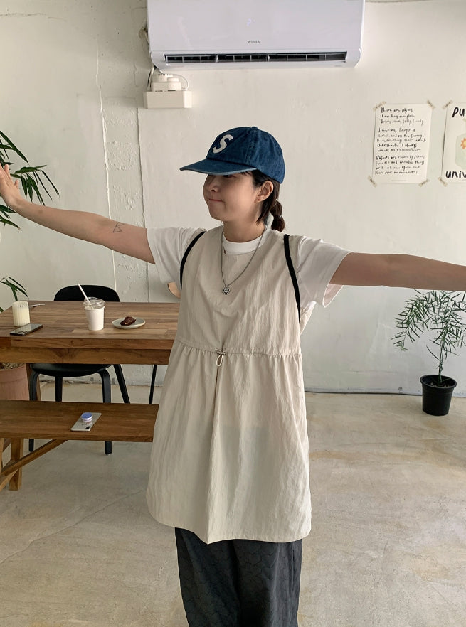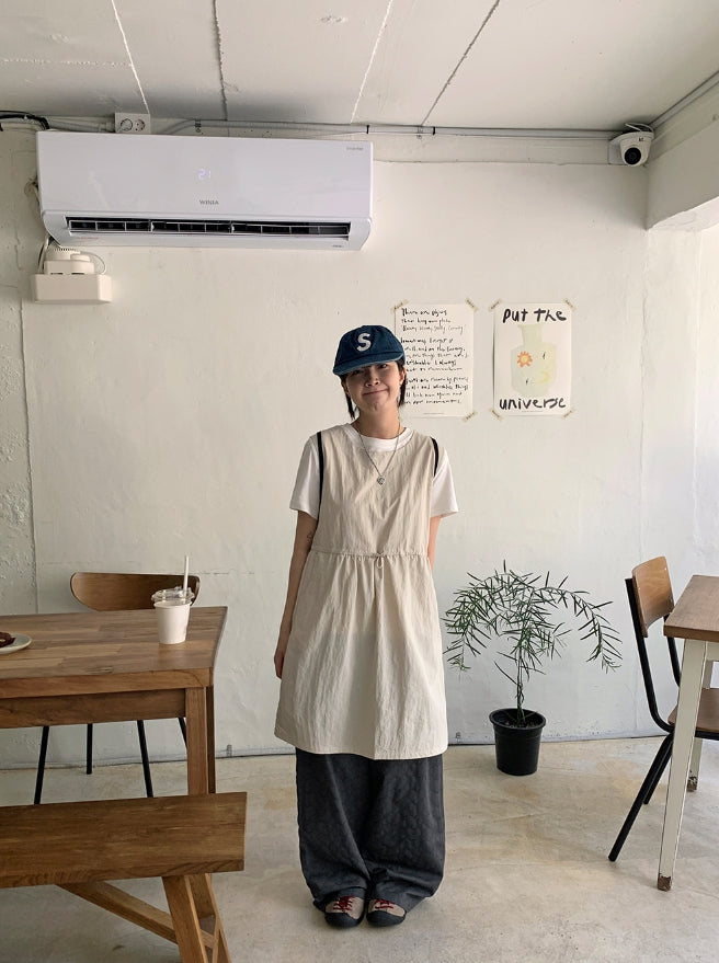 クヒョナイロンストリングポケットミディワンピース