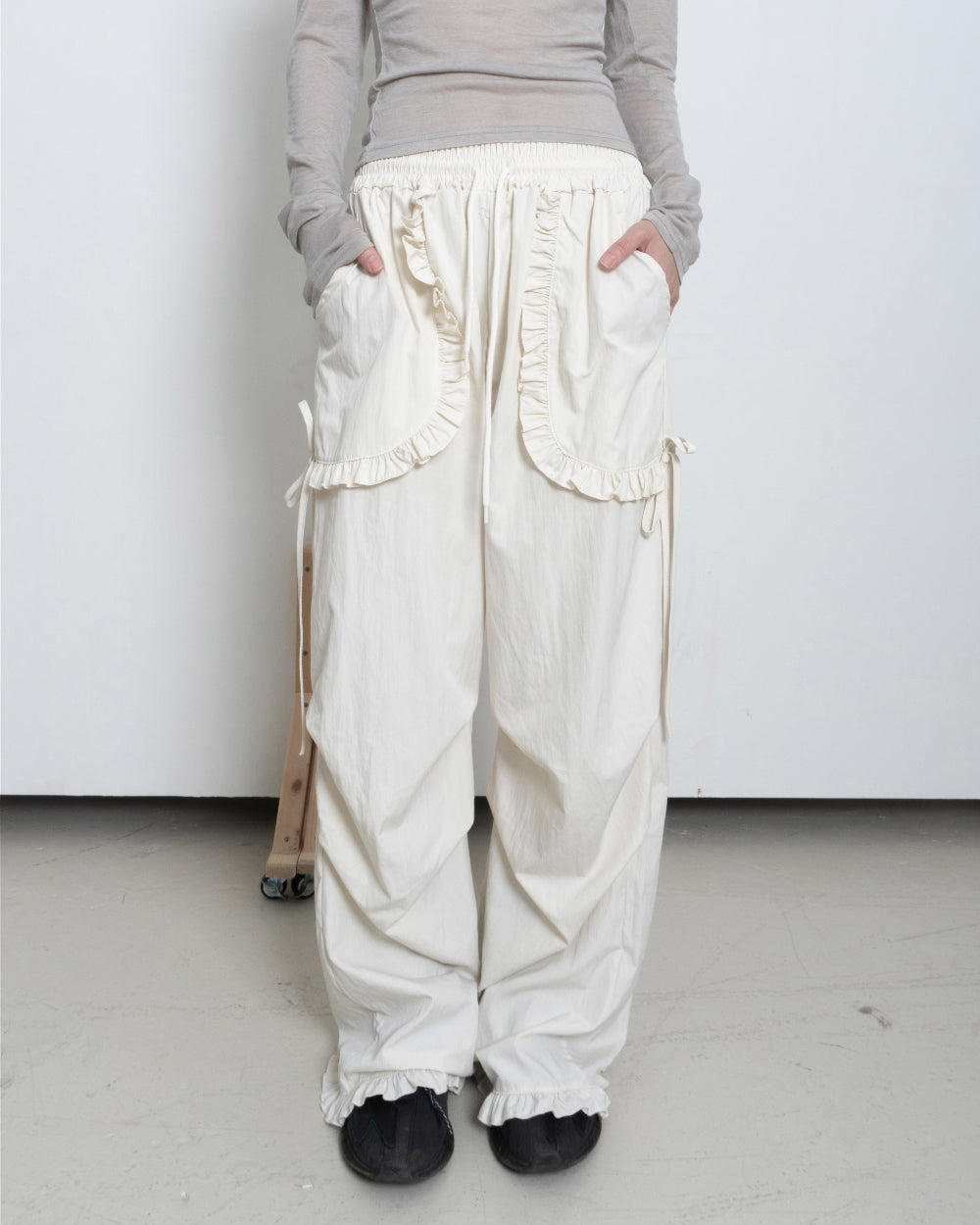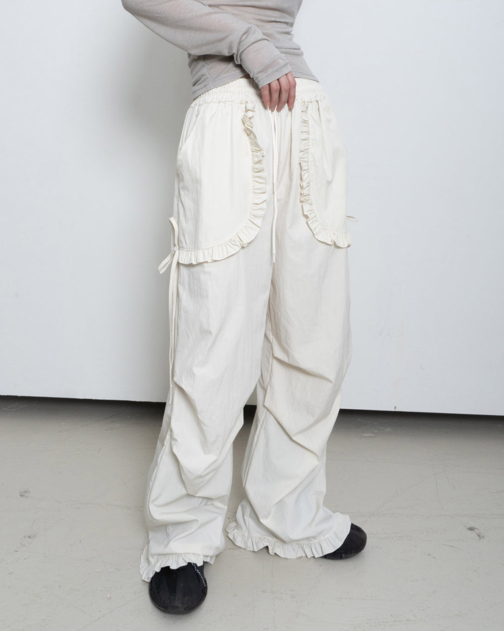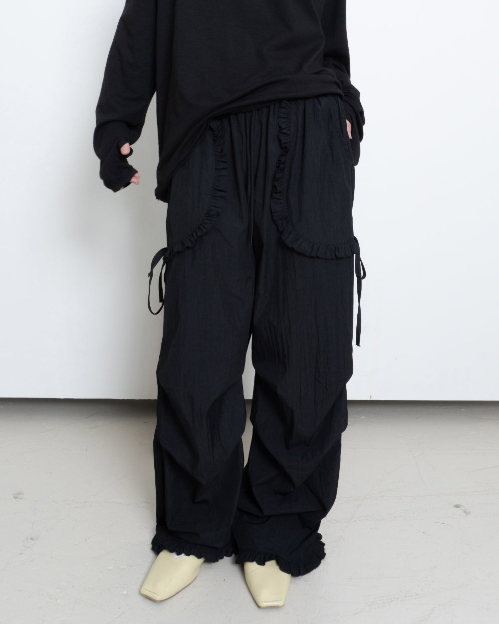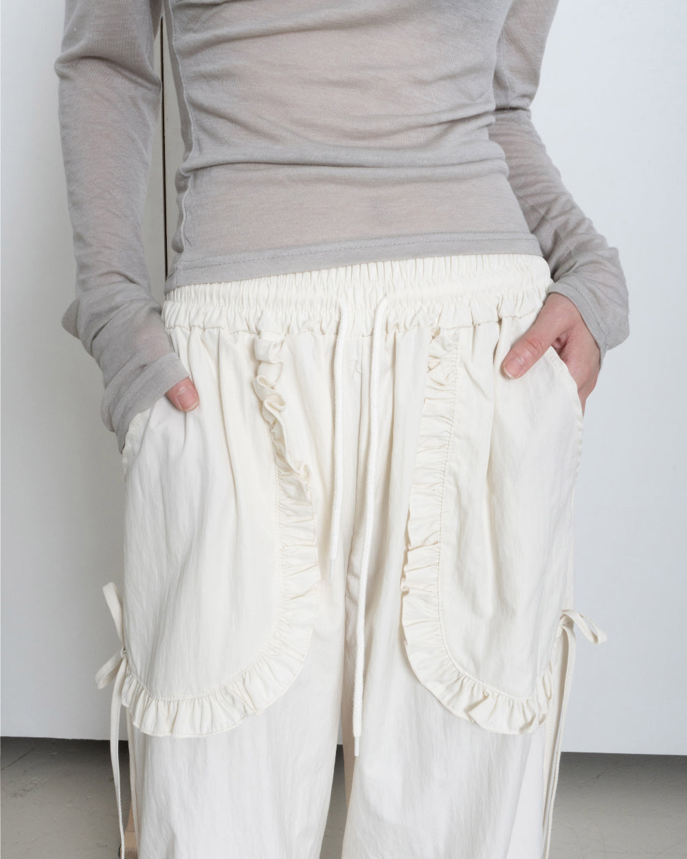 -ONE SIZE (ウエスト(ゴム)60-88 ヒップ104 股上28 股下75 もも周り60 裾周り52 総丈103)