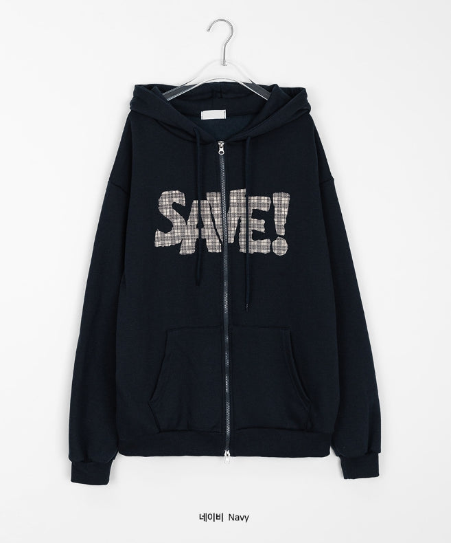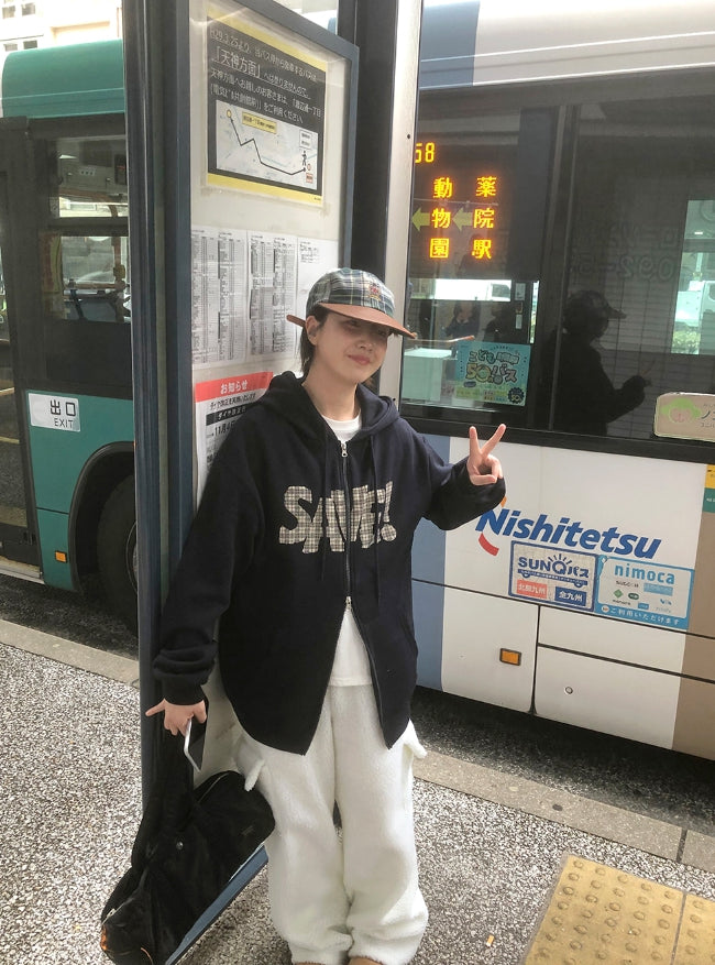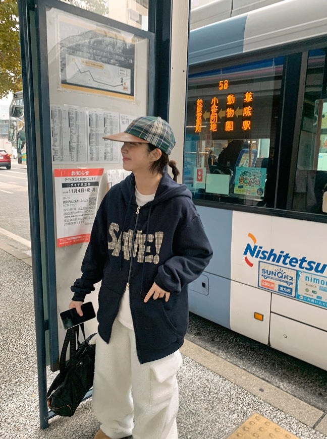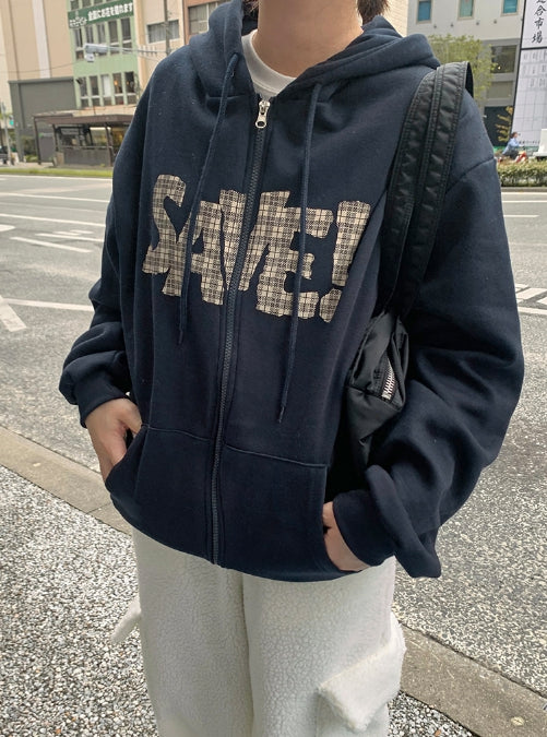 Lacony Check Lettering Hood Zip-Up