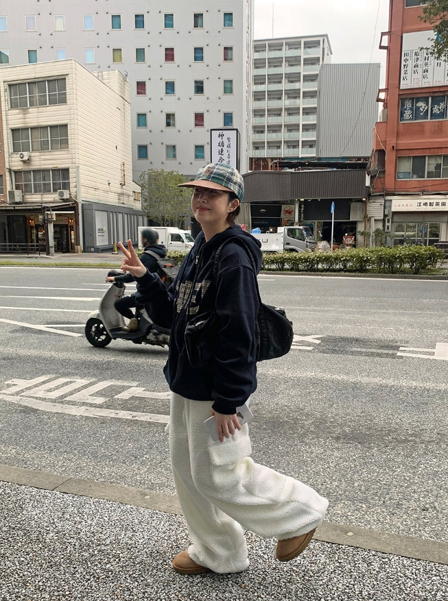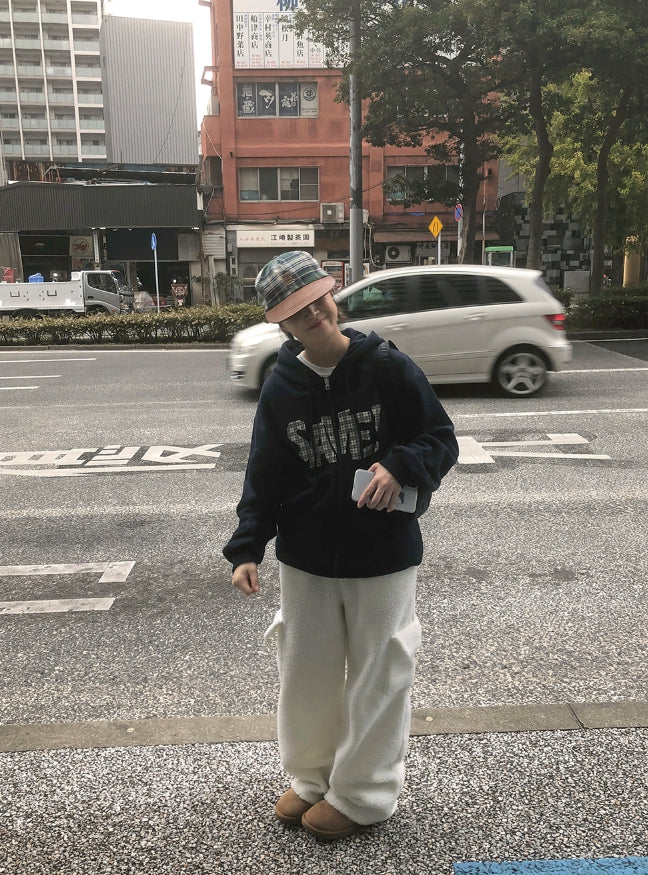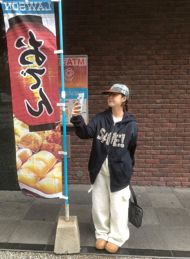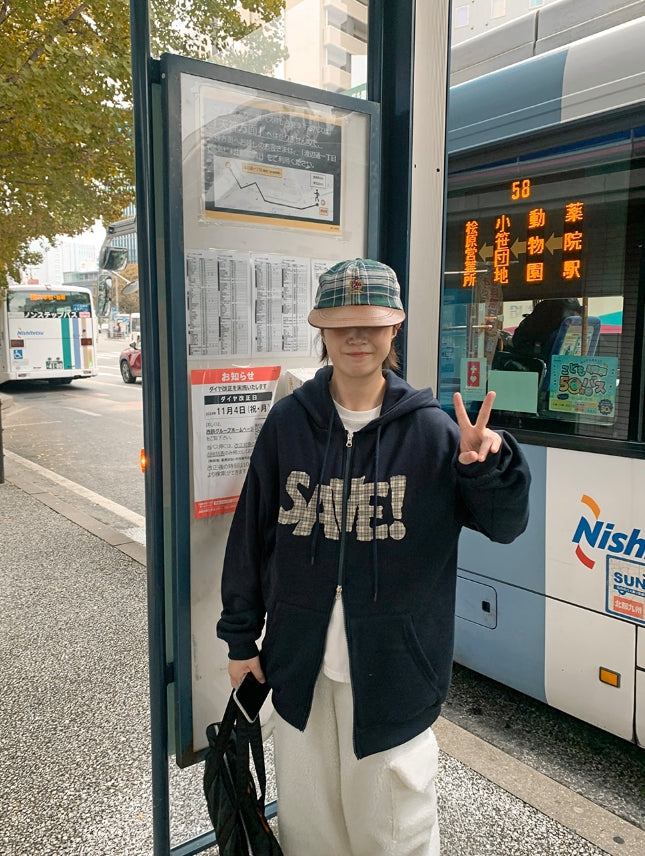 ラコニーチェックレタリングフードジップアップ