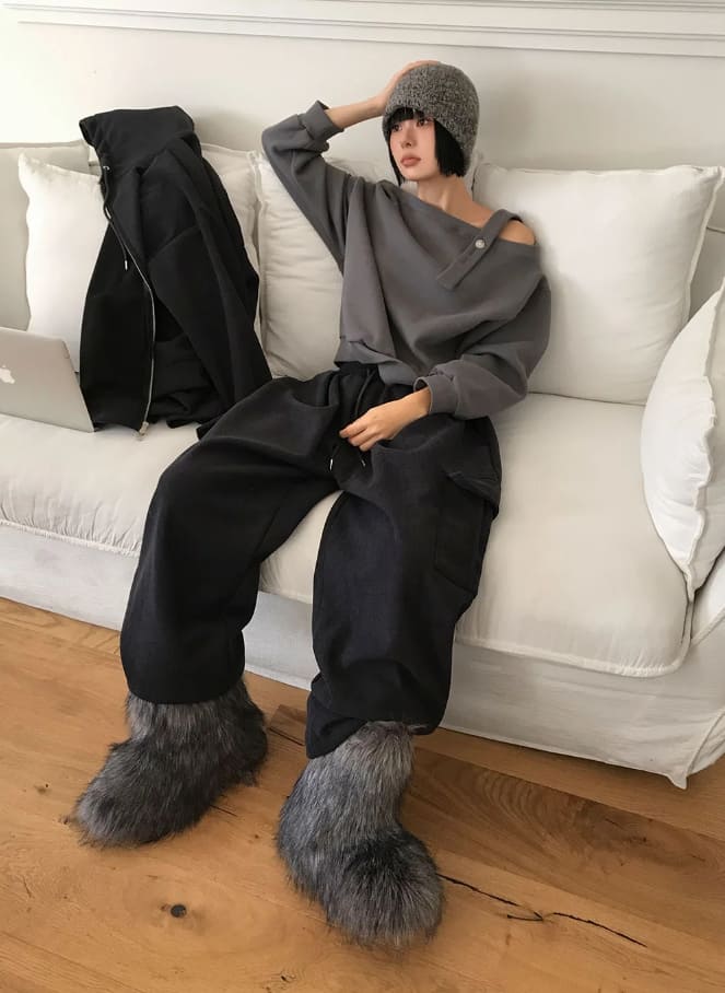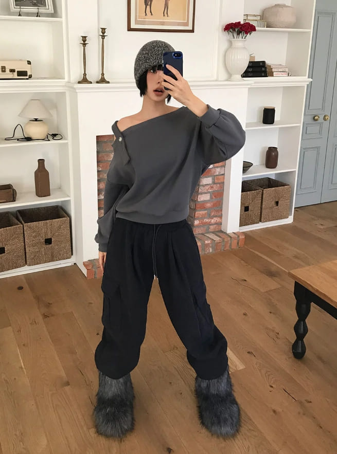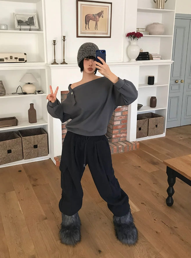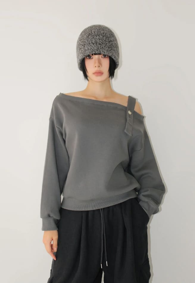 (Lining brushed) STRAP OFF-SHOULDER SWEAT