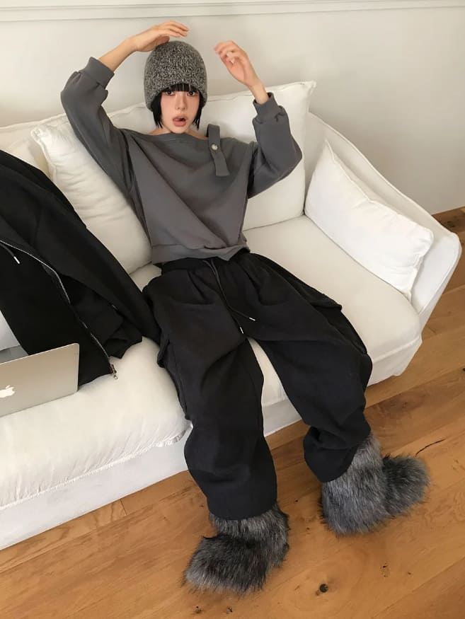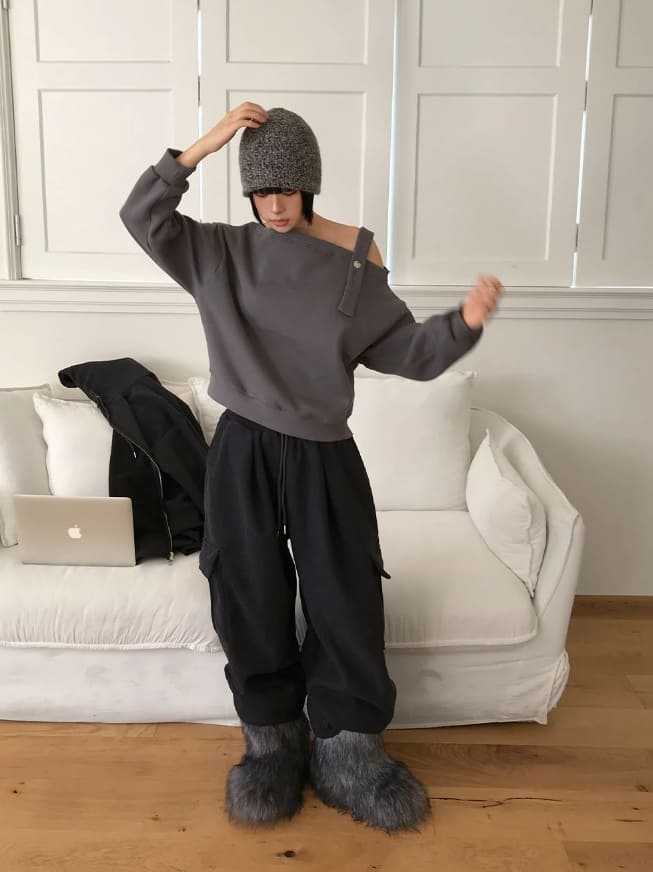 (裏起毛)ストラップオフショルダースウェットシャツ