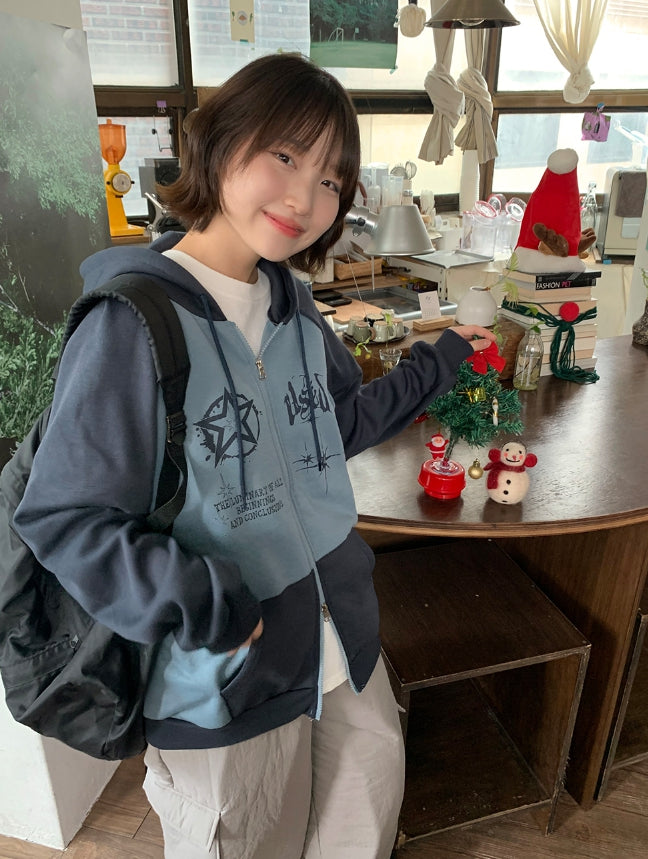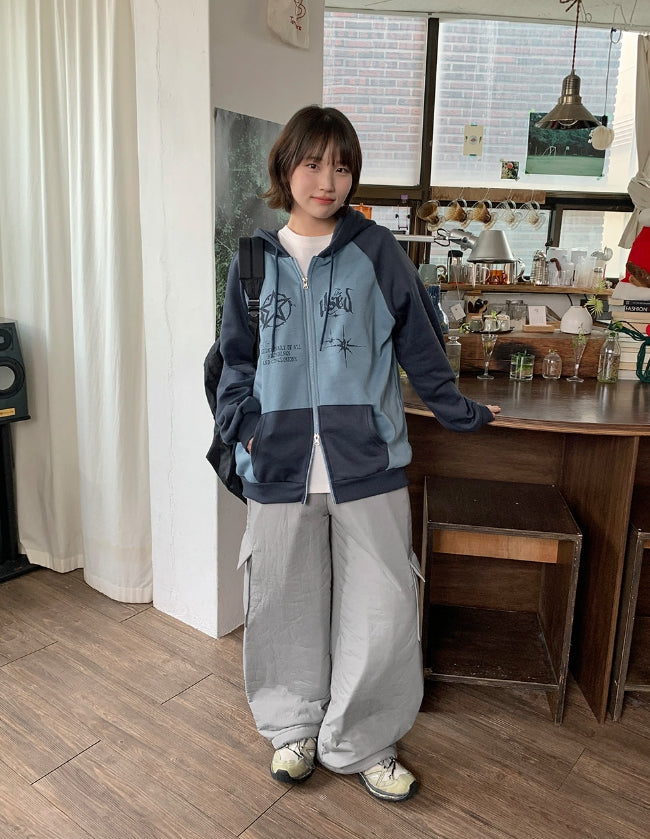 Lokini Brushed Raglan Two-Way Hood Zip-Up