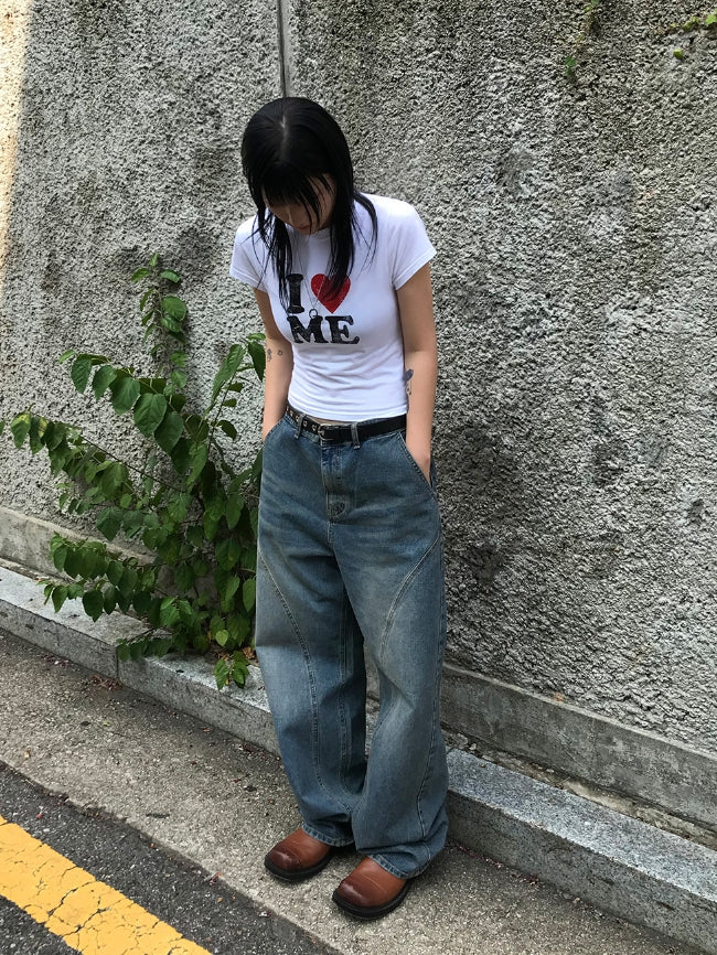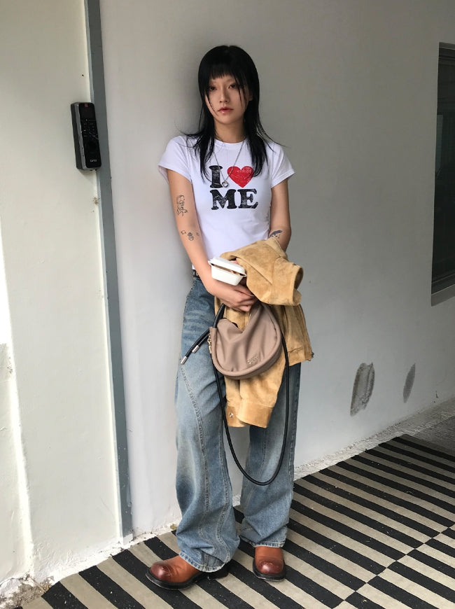 LOVE ME HALF CROP T