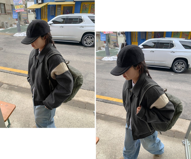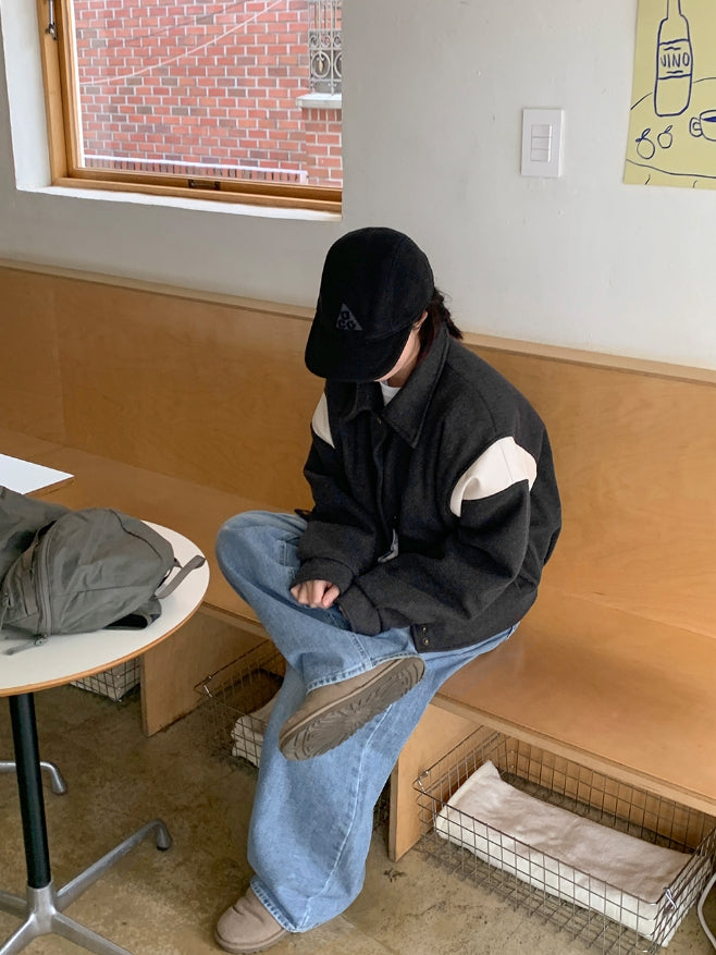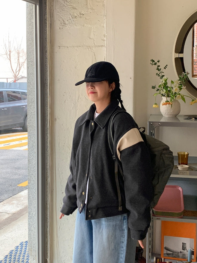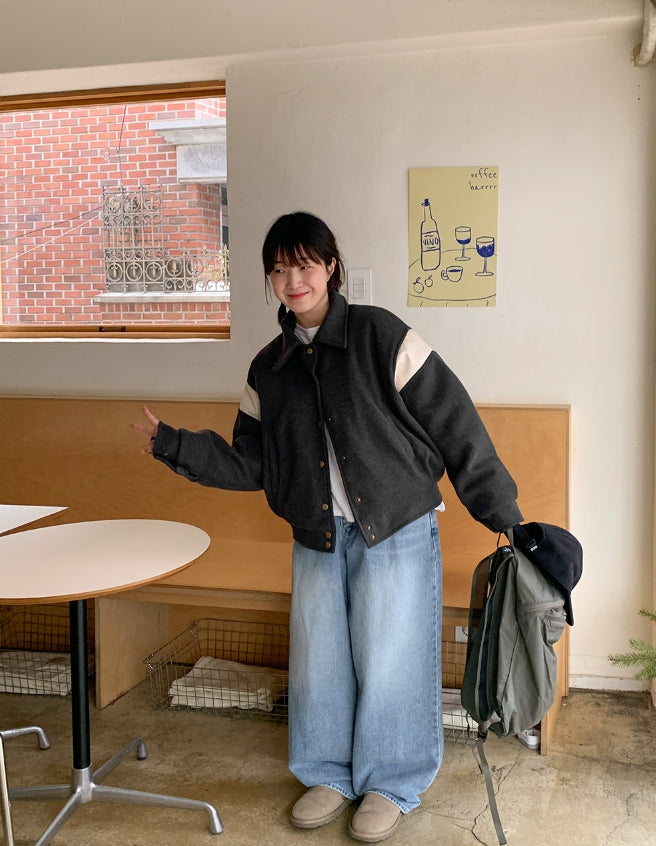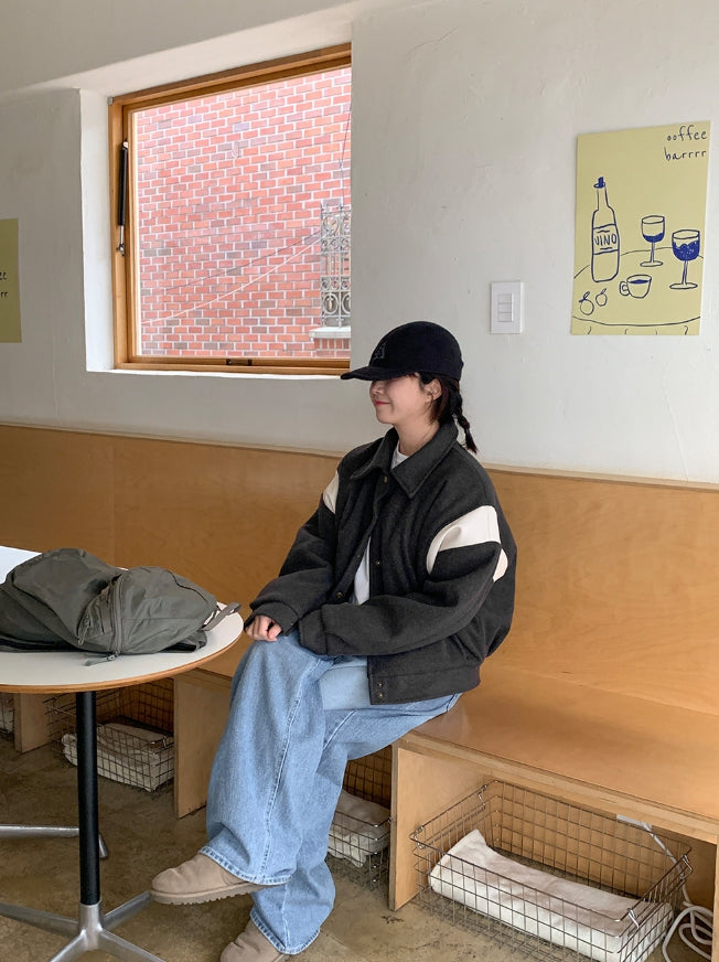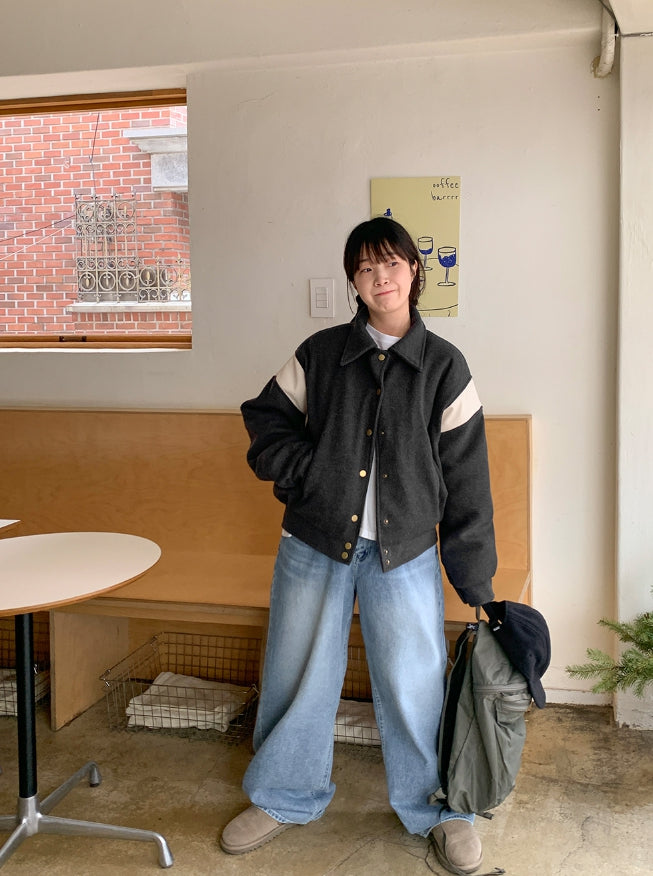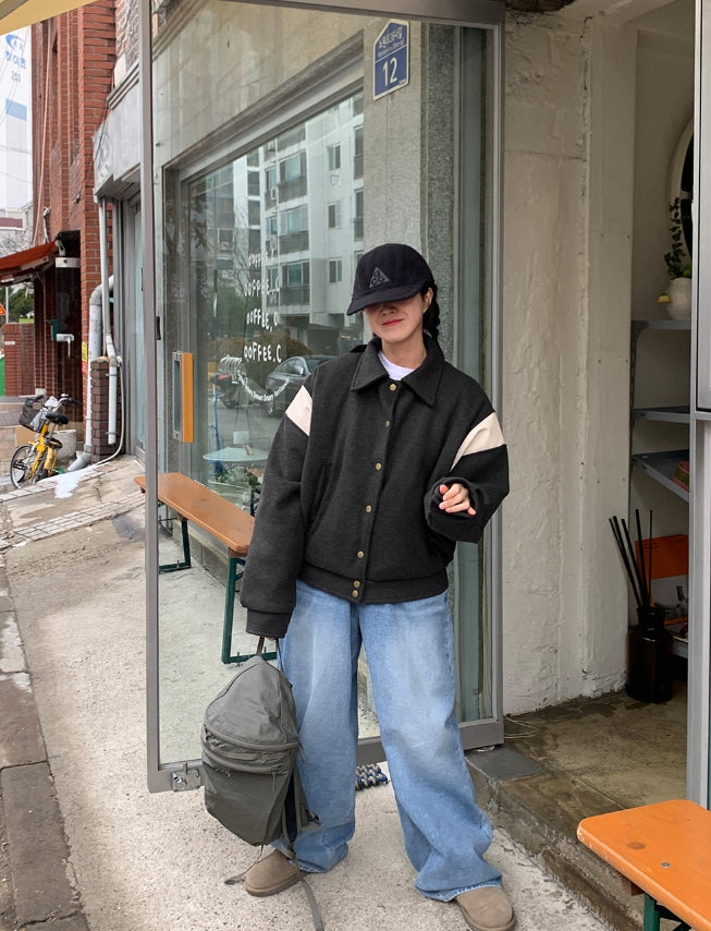 Lumti color matching collar quilted varsity jumper