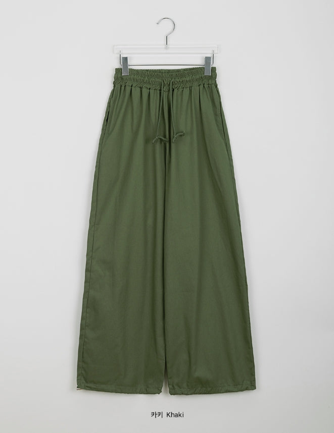 マミコピンタックストリングワイドコットンバンディングパンツ