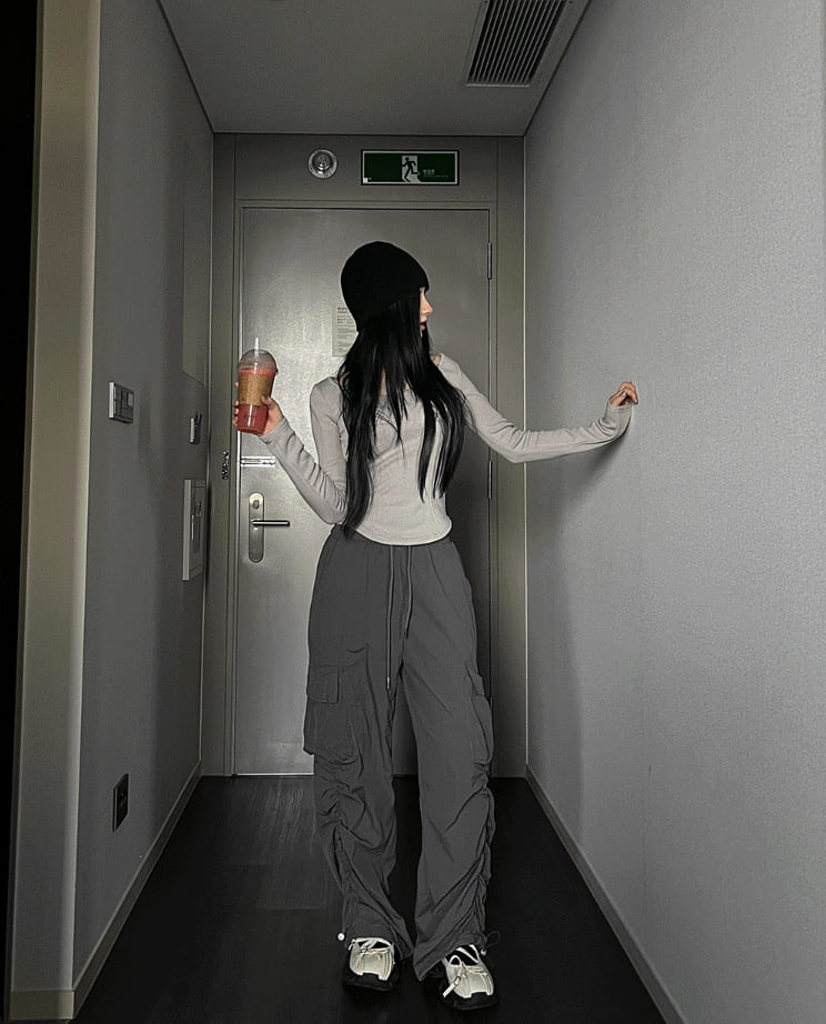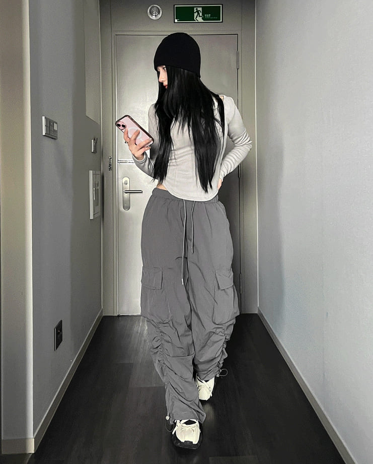 -ONE SIZE (ウエスト(ゴム)70 ヒップ100 股上31 股下69 もも周り64 裾周り54 総丈100)