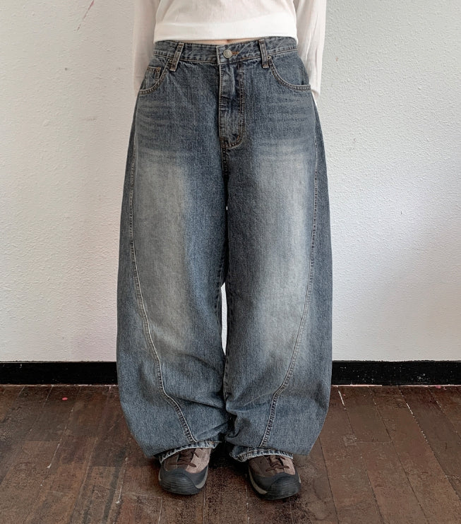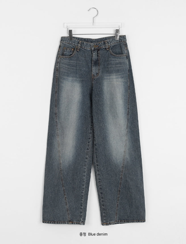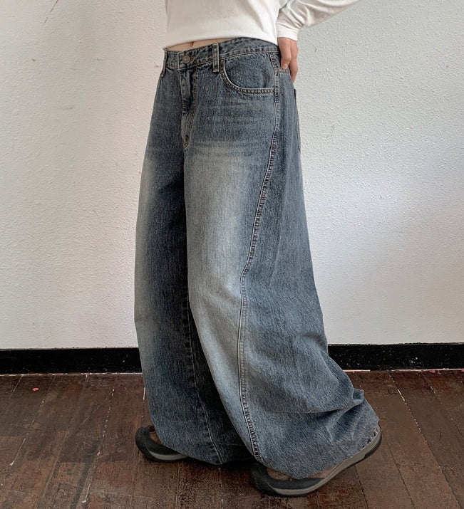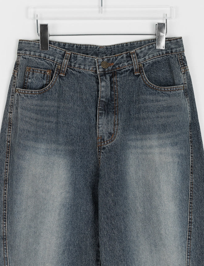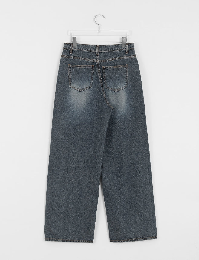 メルセンウォッシュ加工カットワイドデニムパンツ