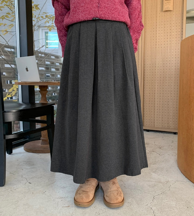 メルティク裏起毛バンディングピンタックフレアロングスカート