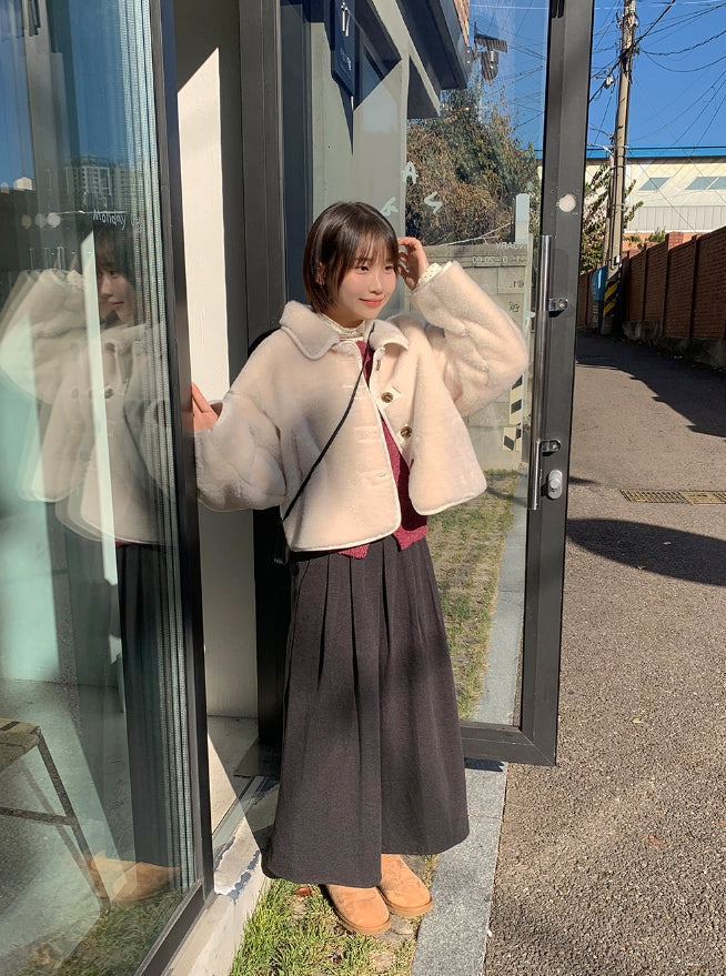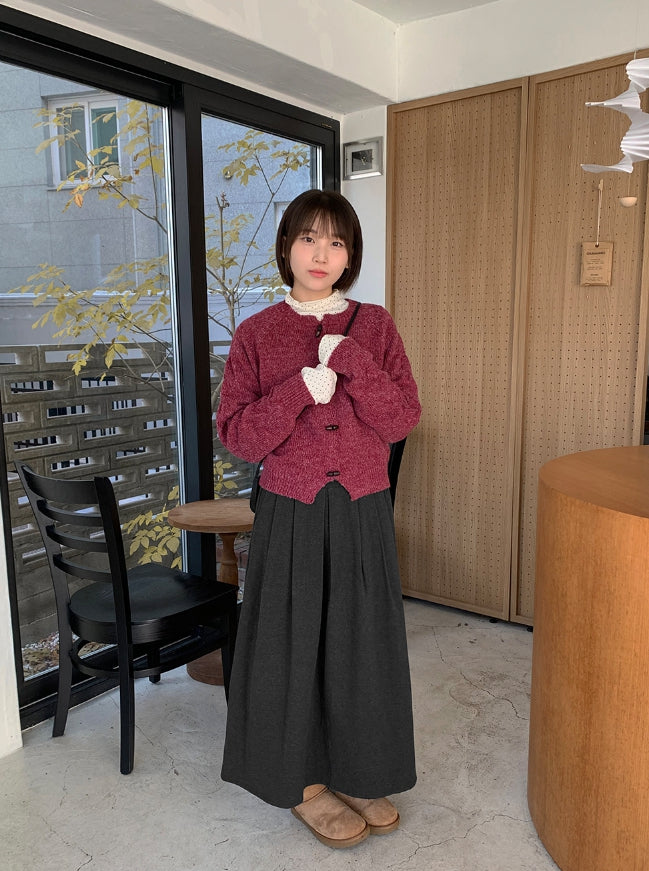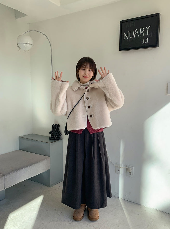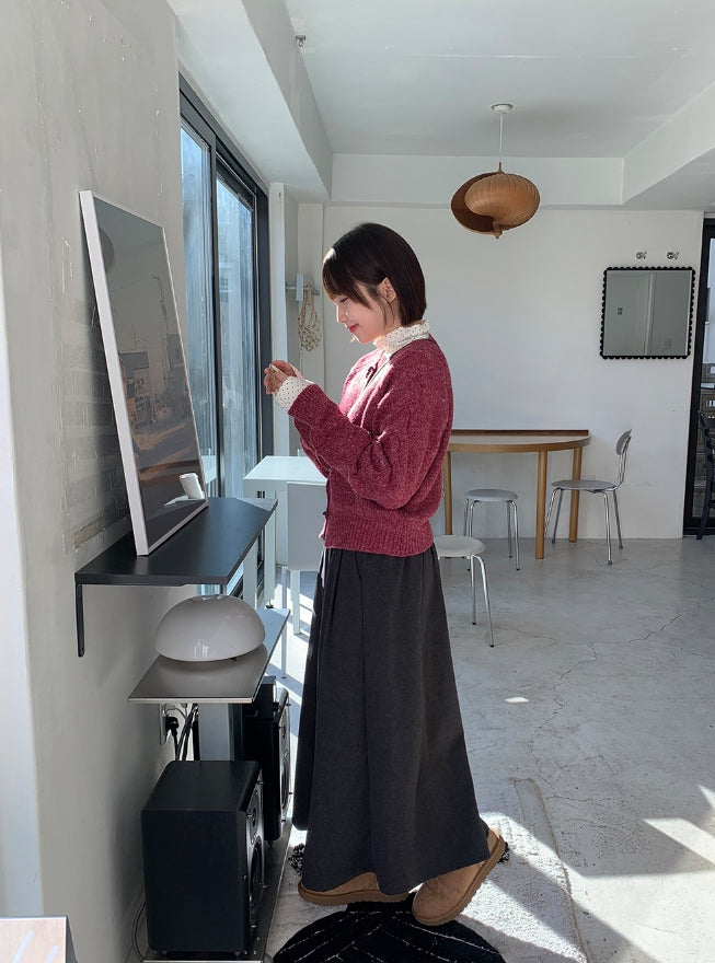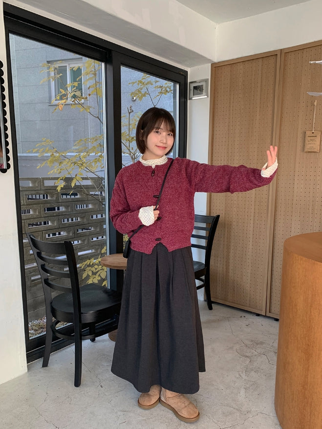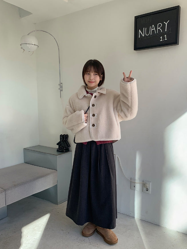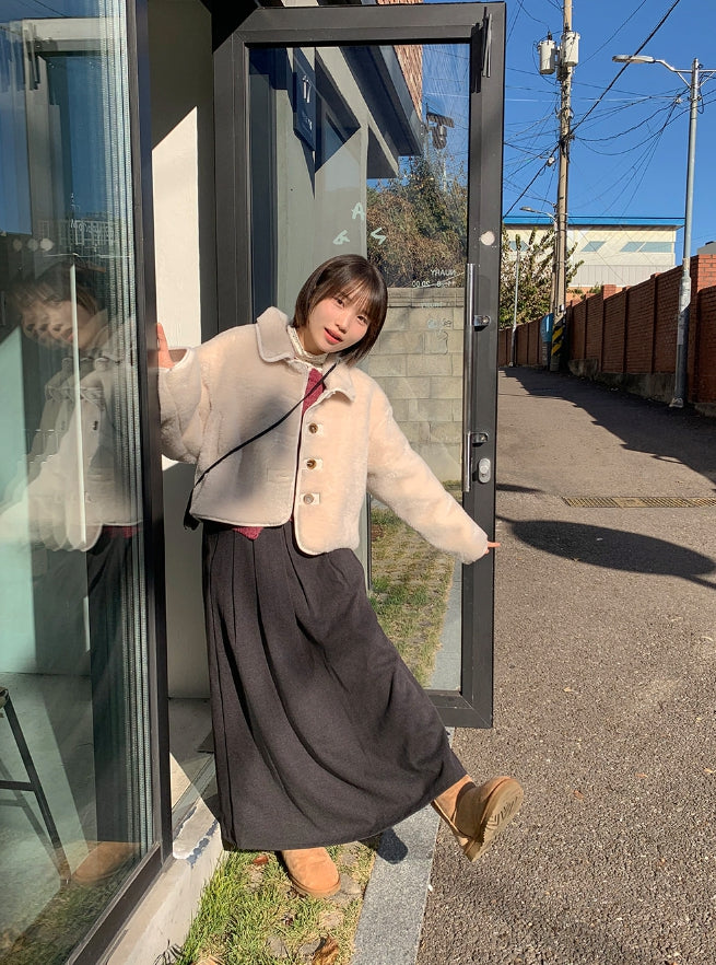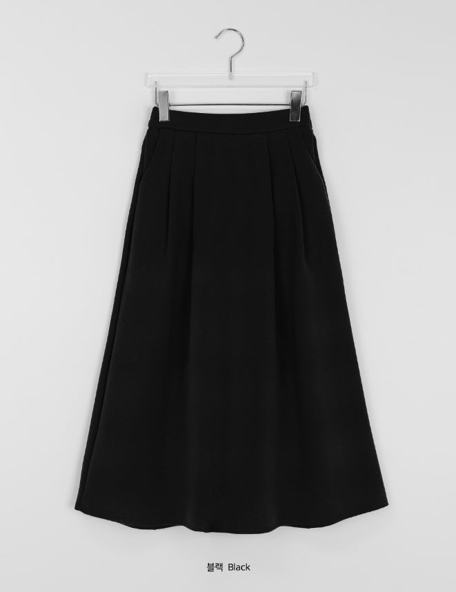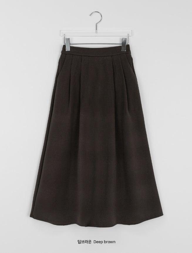 Meltik Brushed Banding Pin Tuck Flare Long Skirt